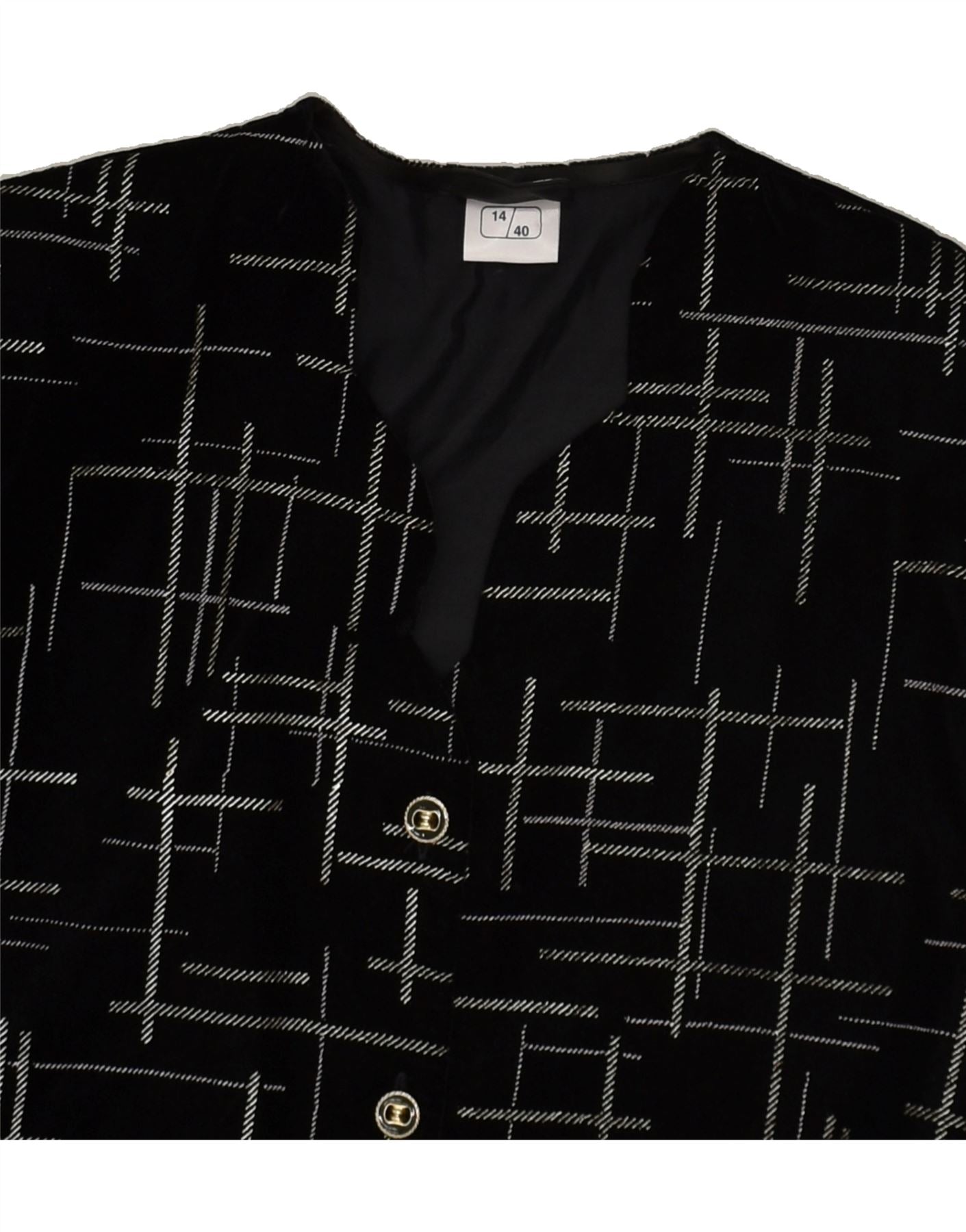 VINTAGE Womens 4 Button Blazer Jacket UK 14 Large Black Check