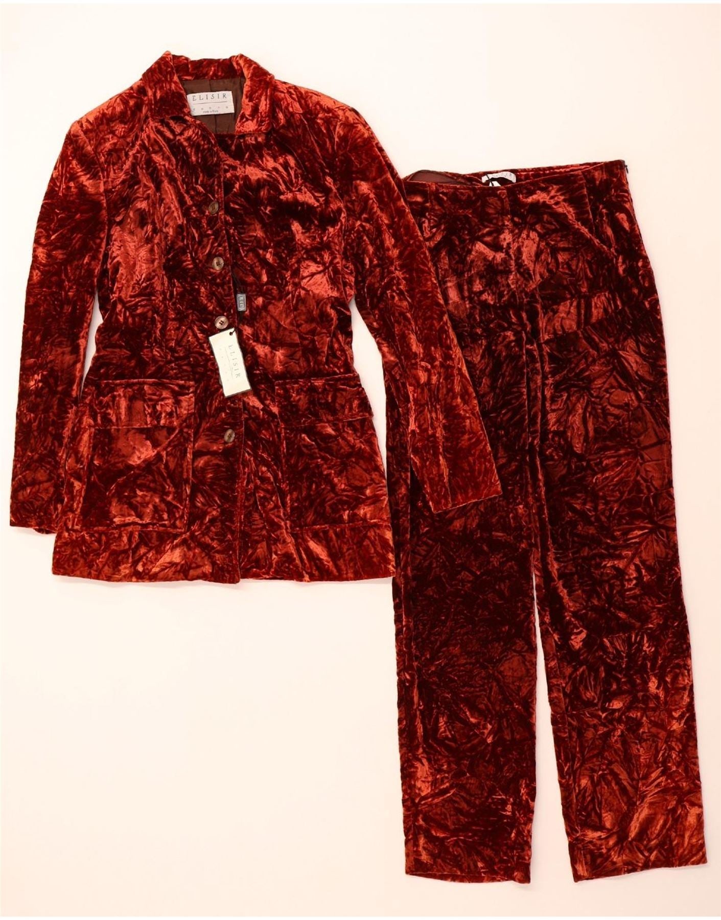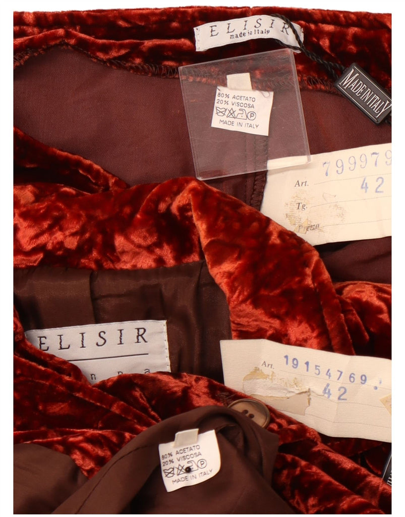 VINTAGE Womens 5 Button Velvet 2 Piece Suit IT 42 Medium W28 L29 Burgundy