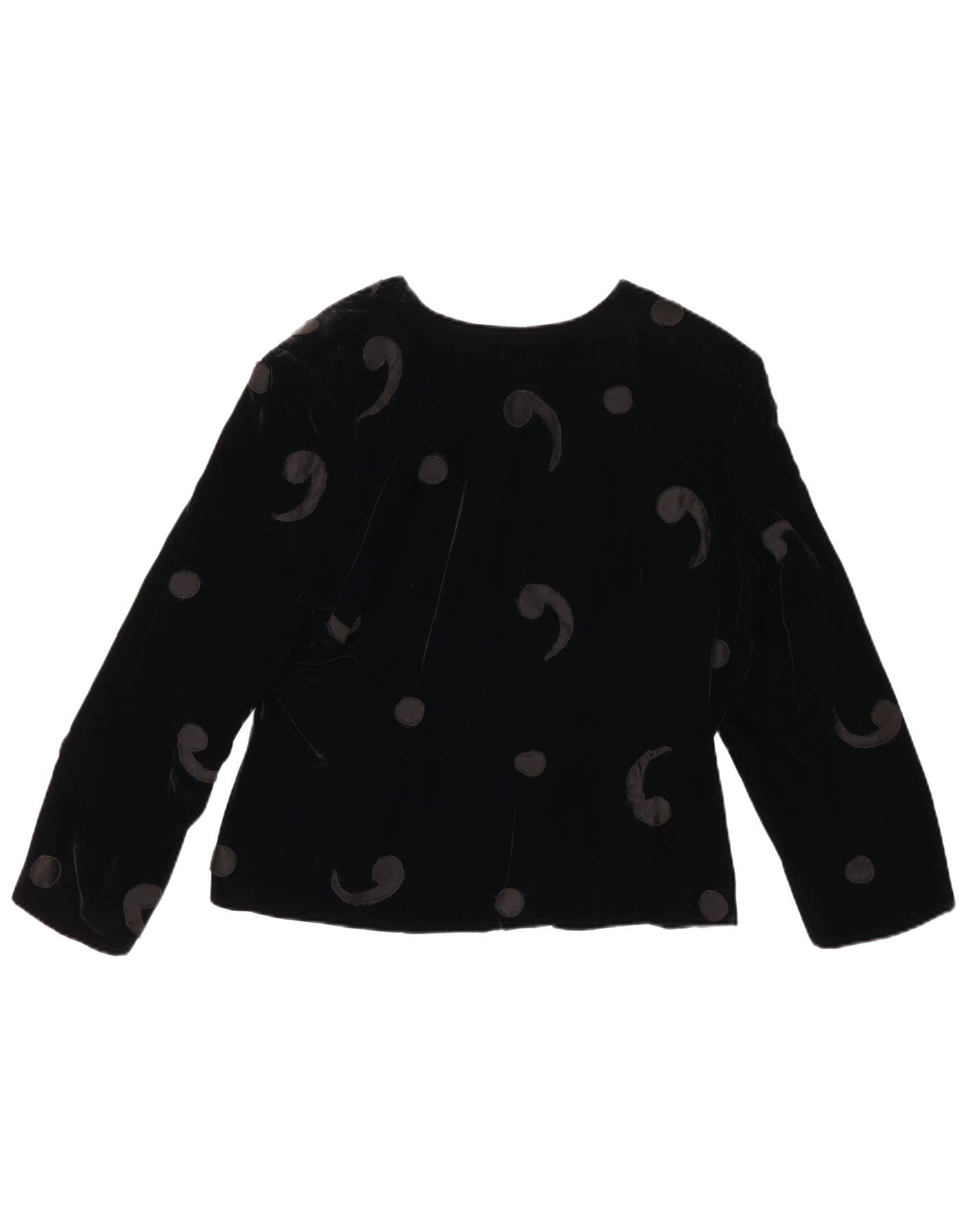 VINTAGE Damska marynarka zapinana na 5 guzików, aksamitna marynarka UK 12, średnia czarna Paisley