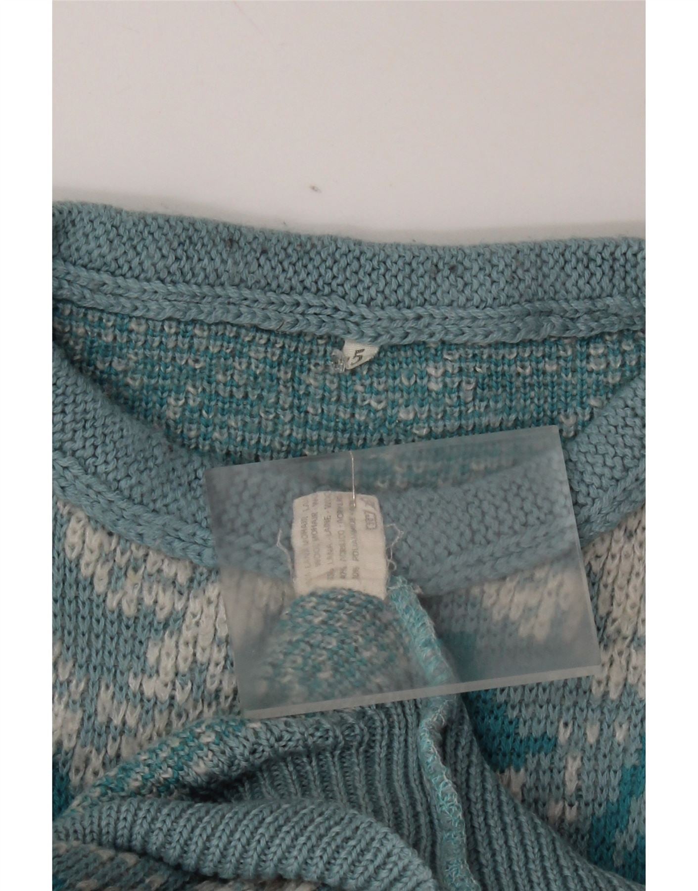 Vintage damski sweter z abstrakcyjnym wzorem i okrągłym dekoltem UK 16, duży niebieski