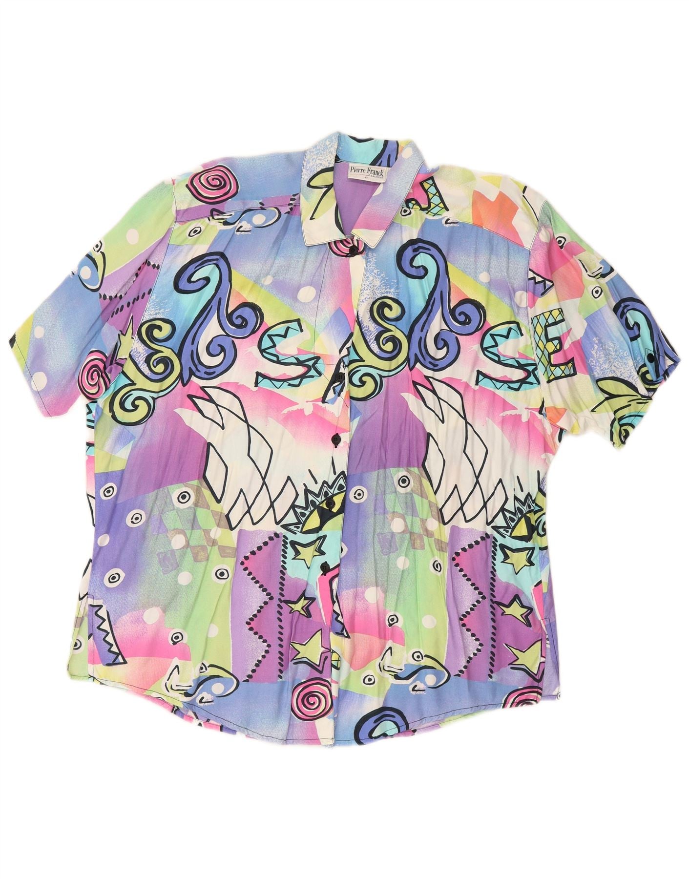 Damska bluzka koszulowa VINTAGE w abstrakcyjny wzór EU 42, duża, wielobarwna