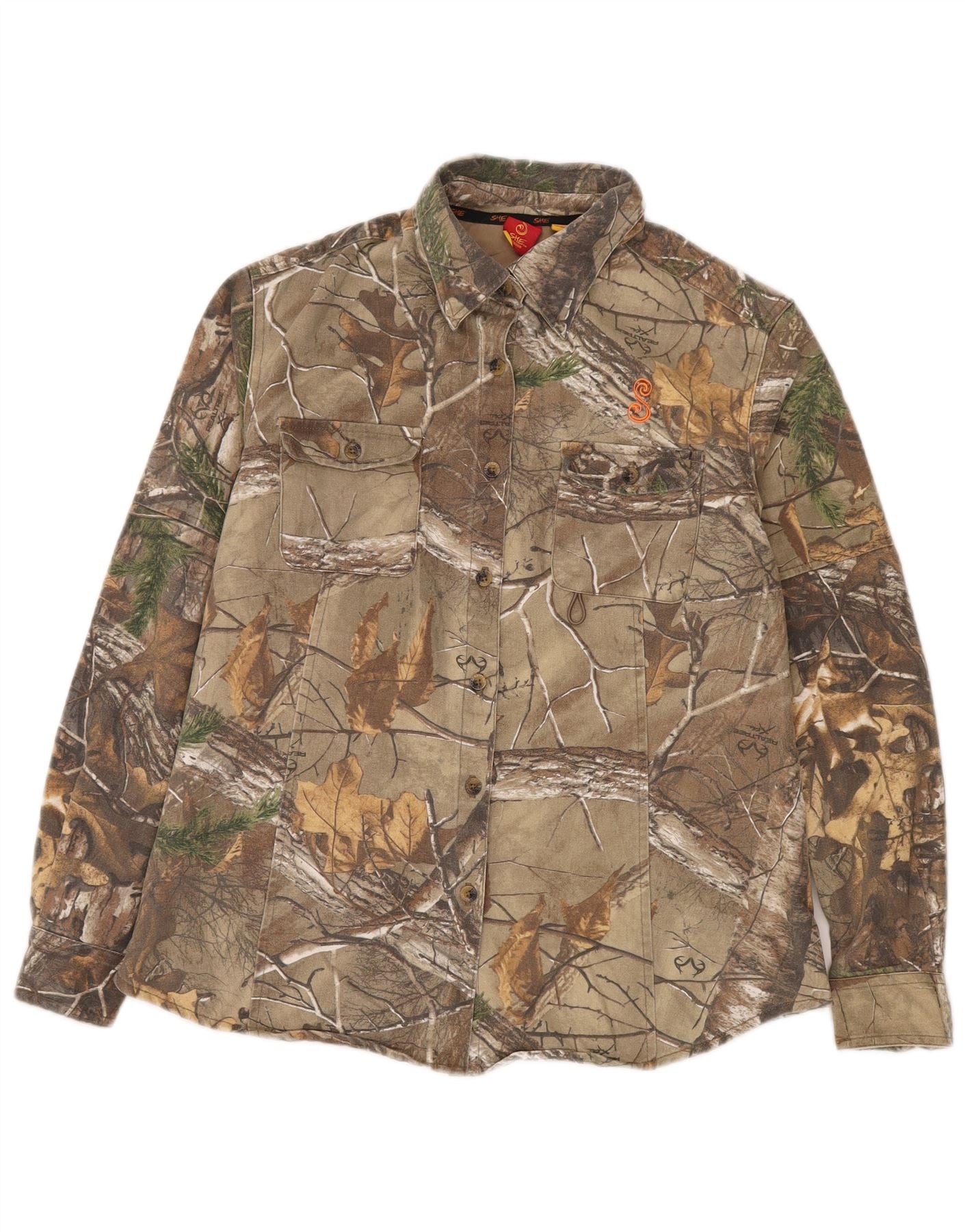 Koszula damska VINTAGE w abstrakcyjny wzór UK 16, duża, bawełniana w kolorze khaki