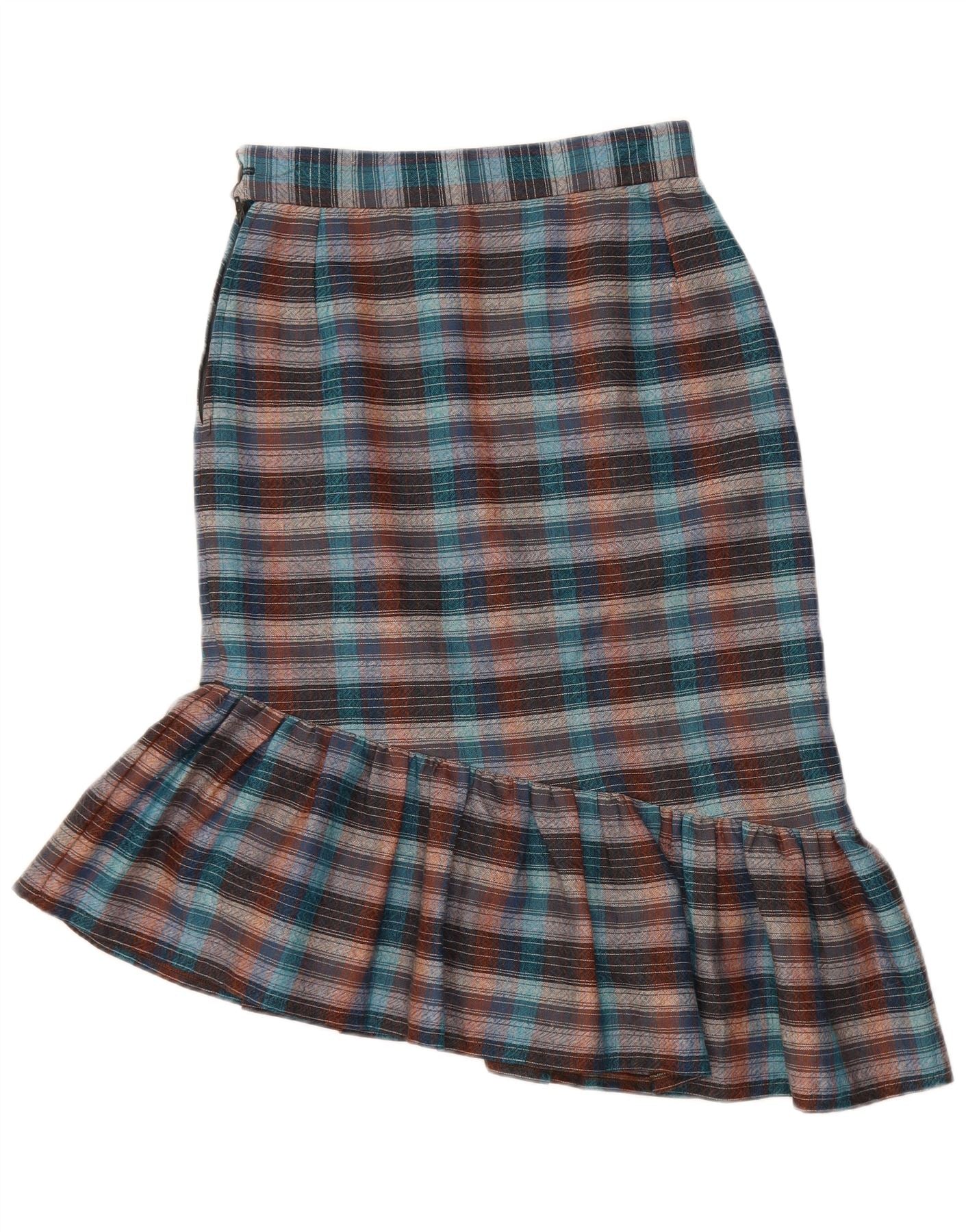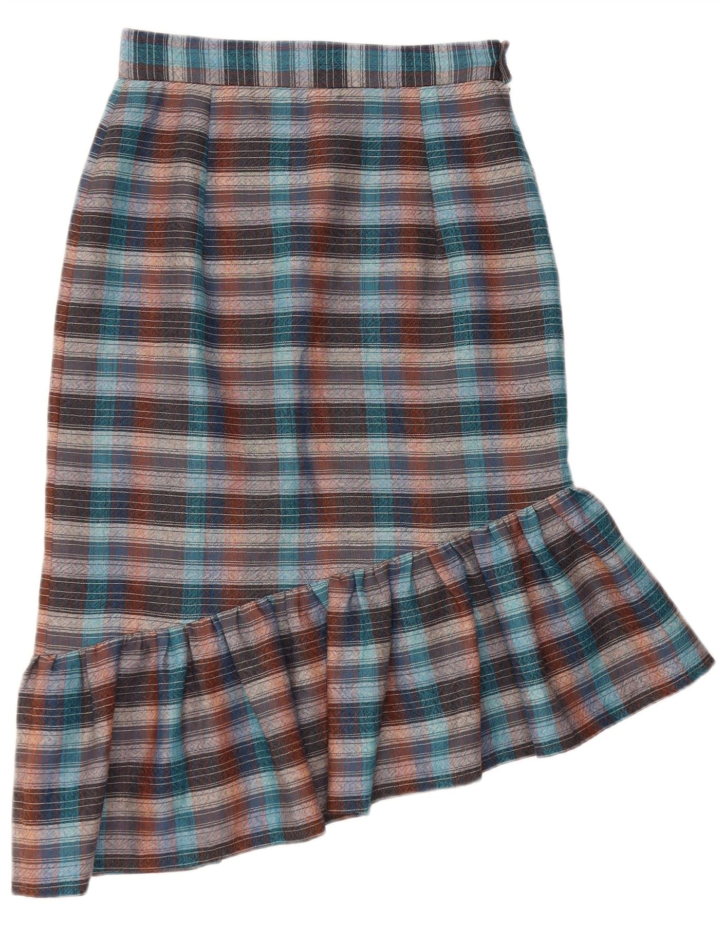 VINTAGE damska asymetryczna spódnica trąbkowa W26 mała wielobarwna kratka