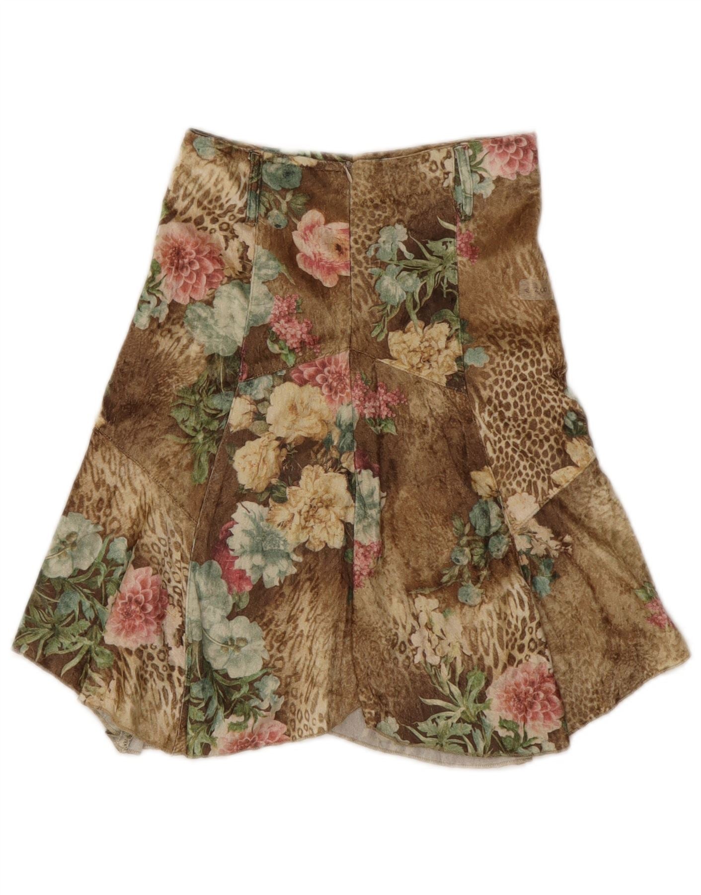 Damska asymetryczna spódnica VINTAGE IT 32 2XS W23 Brązowa, w kwiaty, poliester