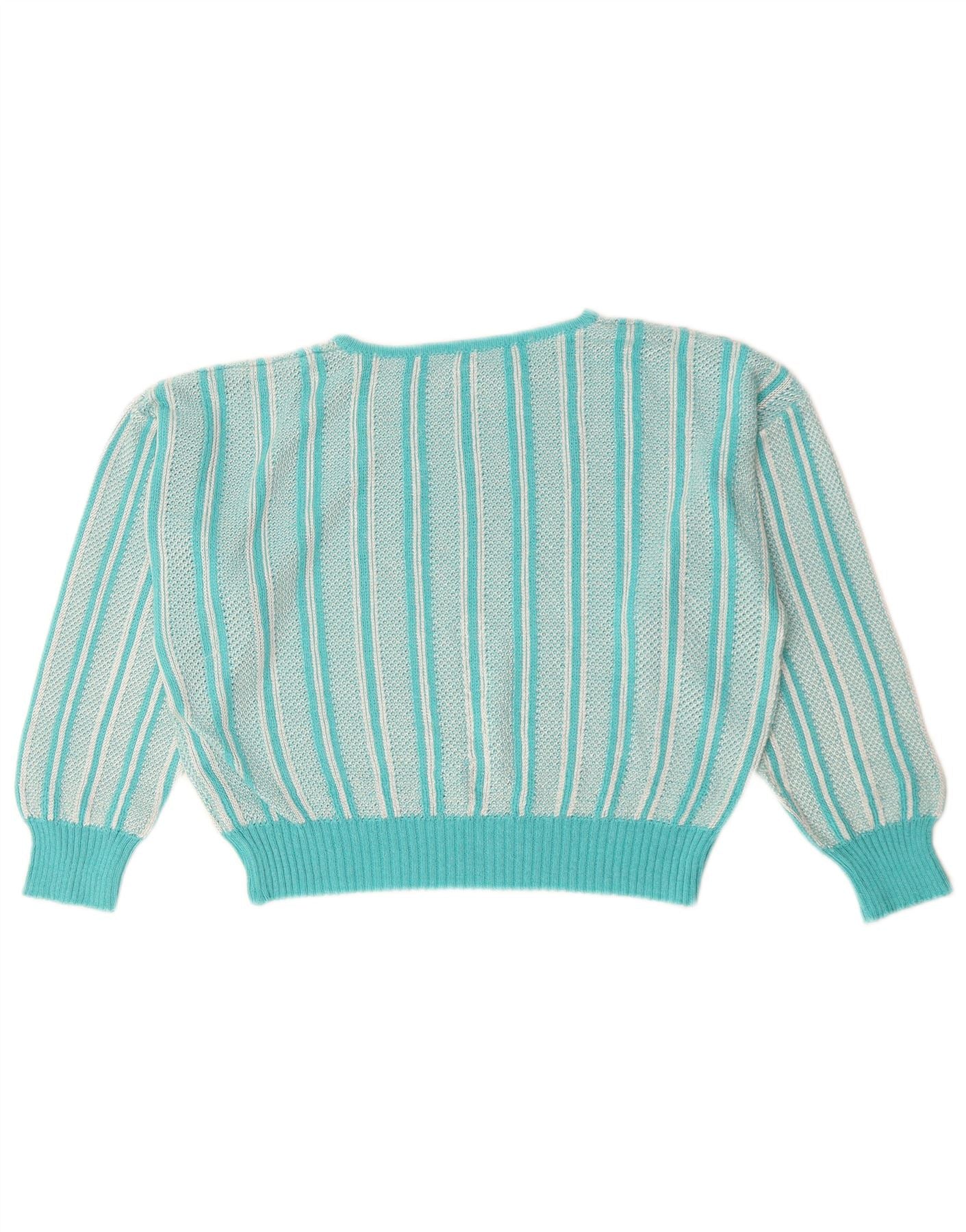 Sweter damski VINTAGE z dekoltem w łódkę UK 12 Średni turkusowy wzór paisley