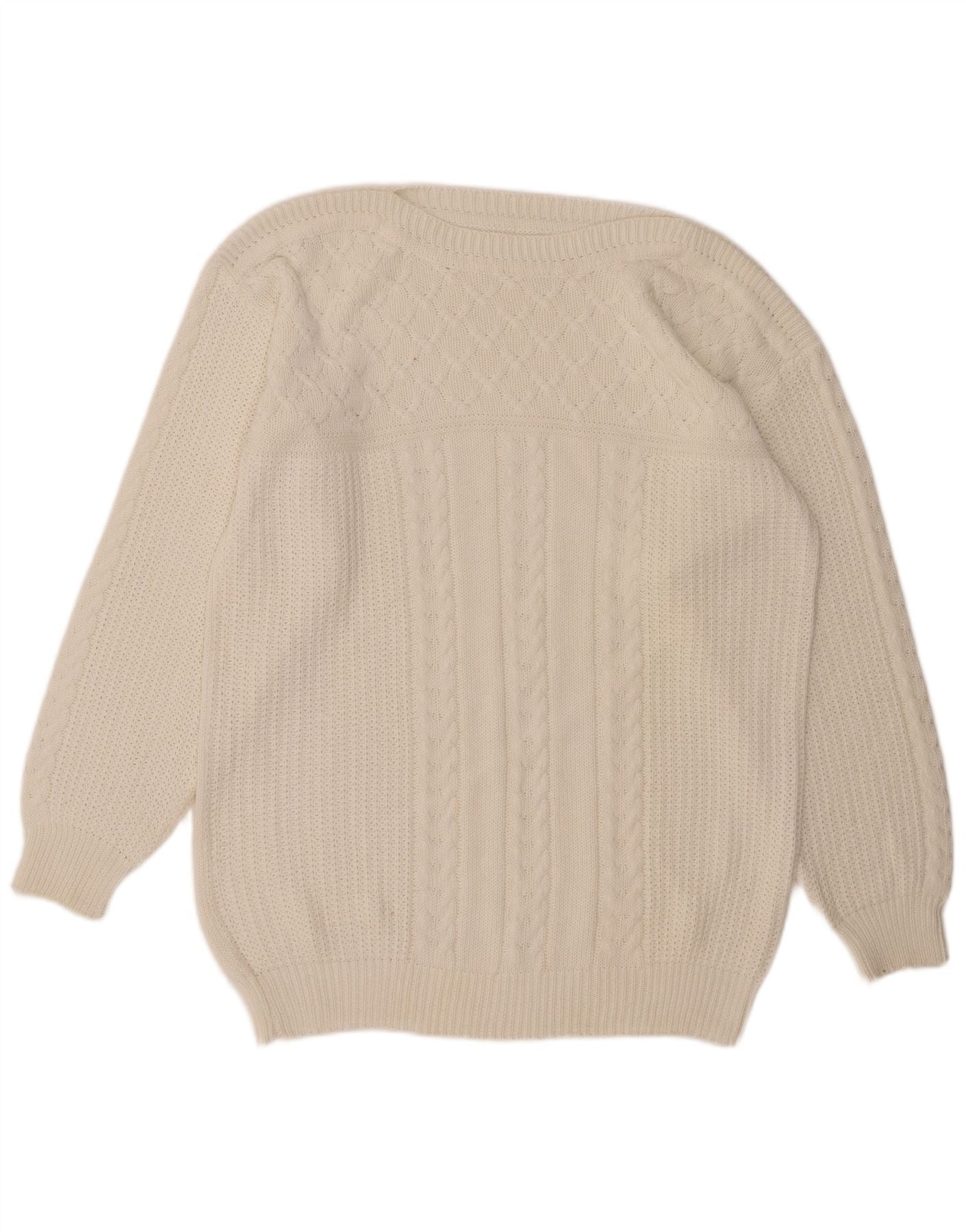 Sweter damski VINTAGE z dekoltem w łódkę UK 14, duży, biały