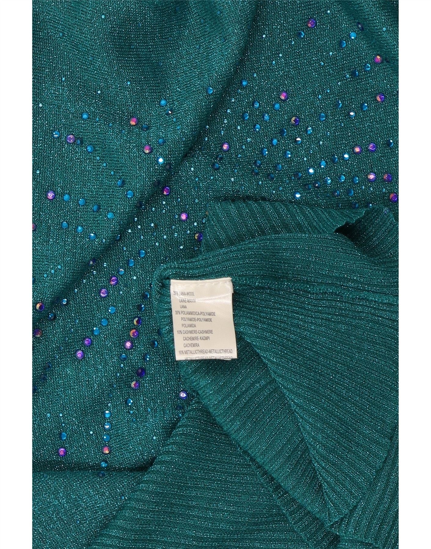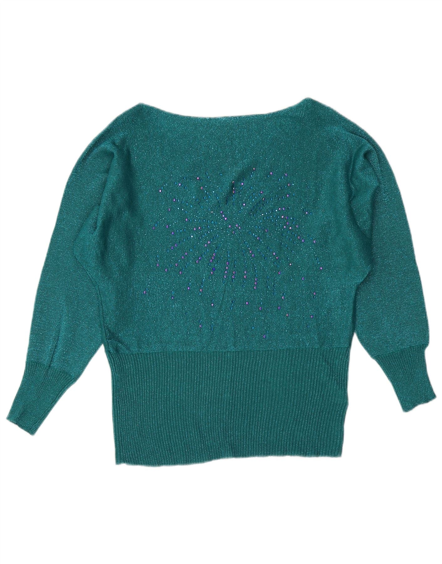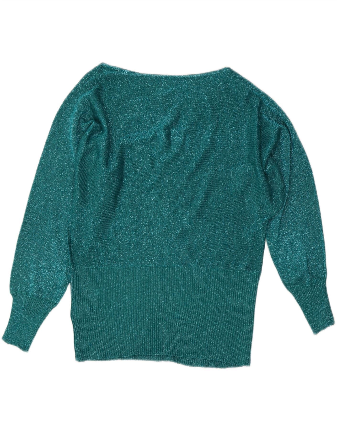 Sweter damski VINTAGE z dekoltem w łódkę UK 16, duży, zielony, wełniany w cętki