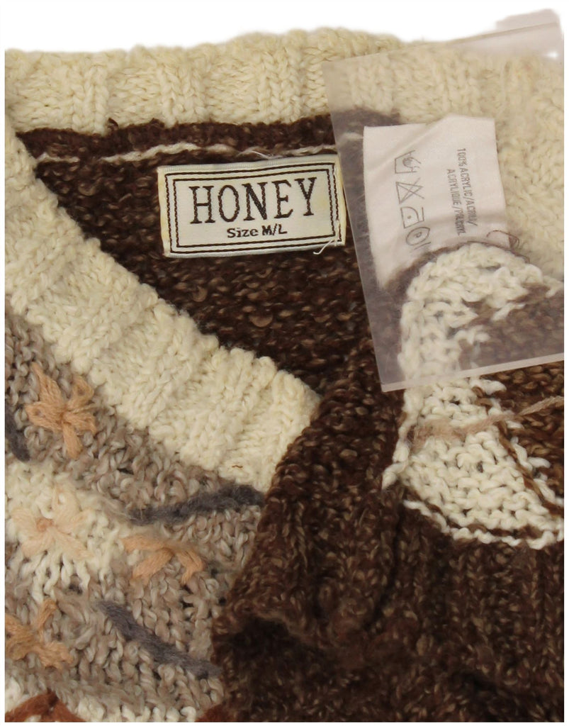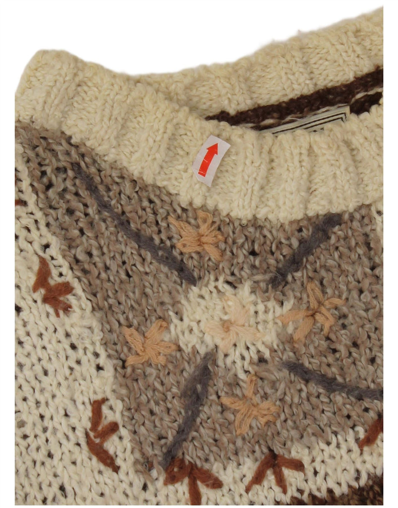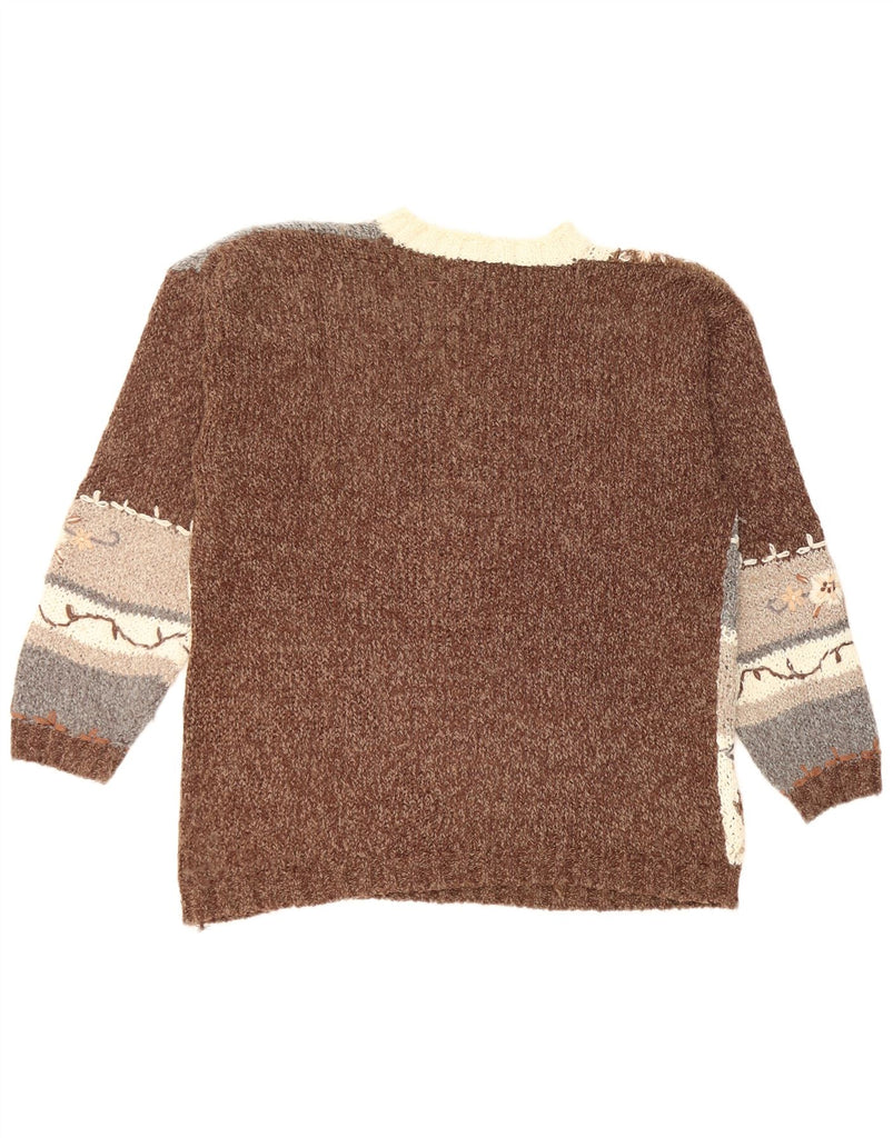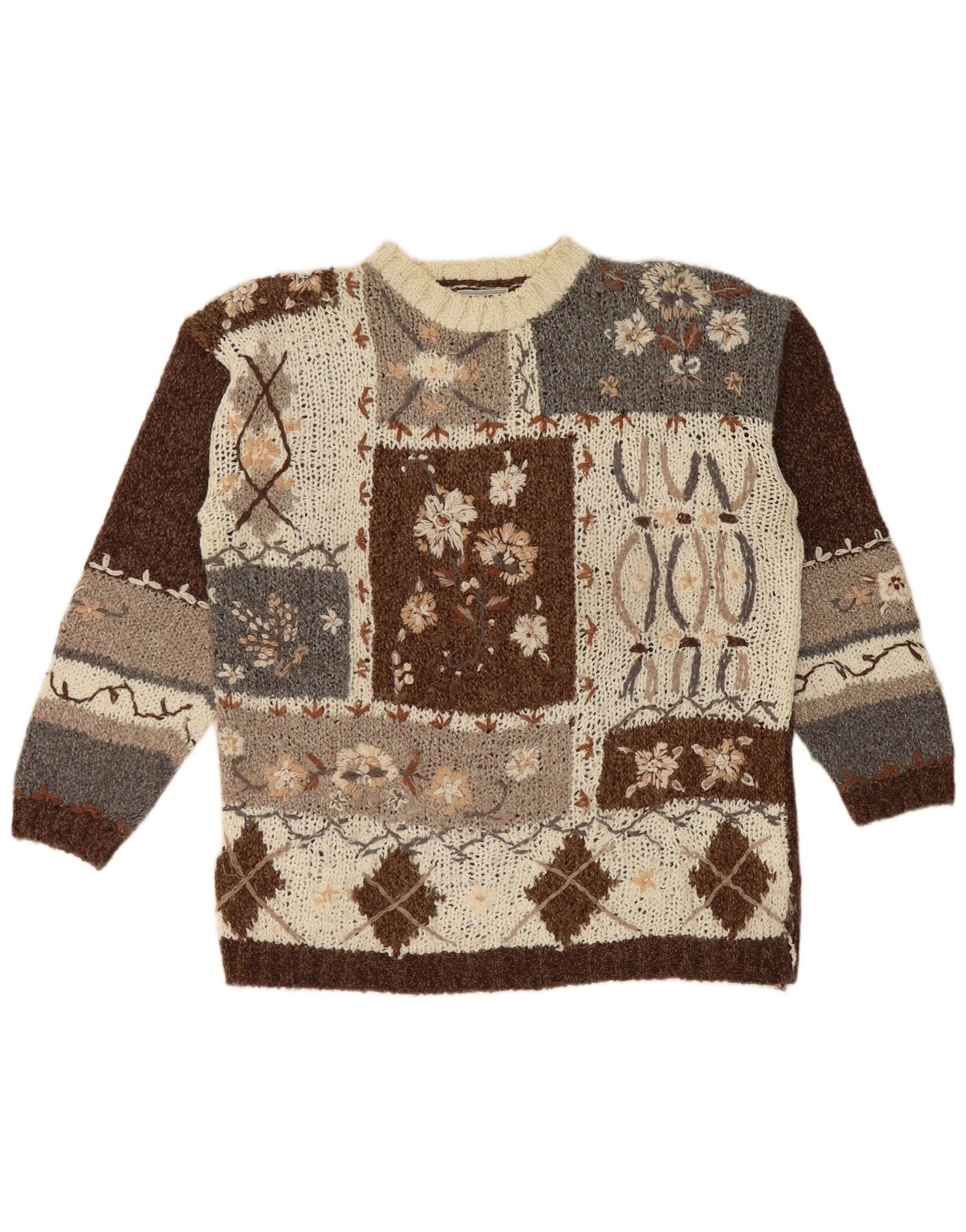 Sweter damski VINTAGE z okrągłym dekoltem UK 14 Średni brązowy w kwiaty