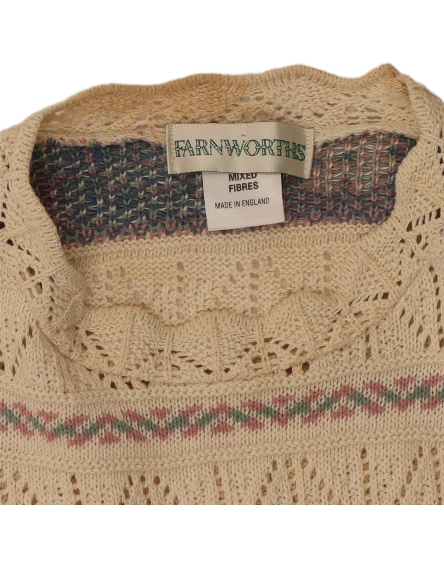 VINTAGE Womens Crew Neck Jumper Sweater UK 16 Large Off White Floral