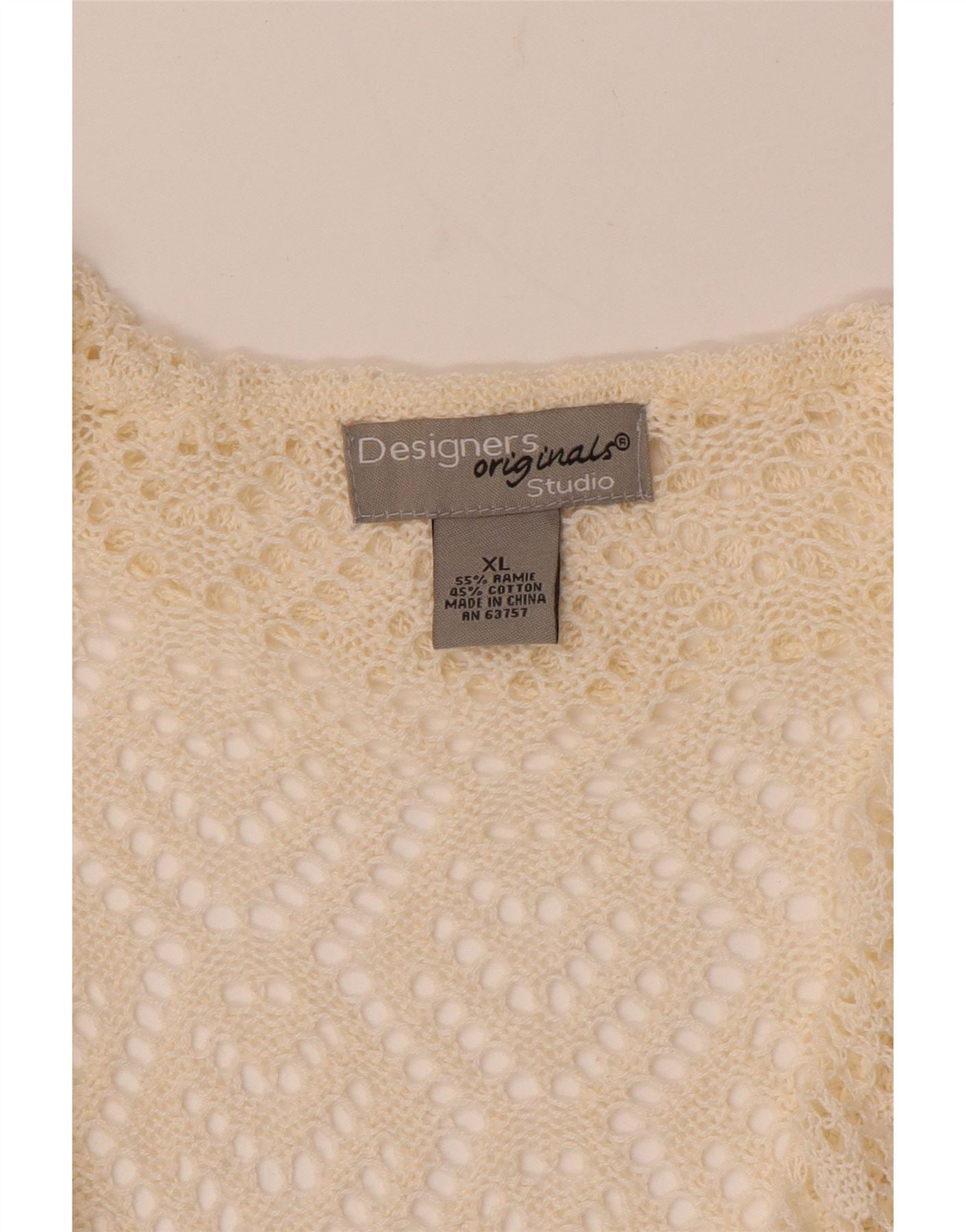 Damski sweter VINTAGE z krótkim rękawem i 3/4 szydełkowym kardiganem UK 18 XL w kolorze złamanej bieli