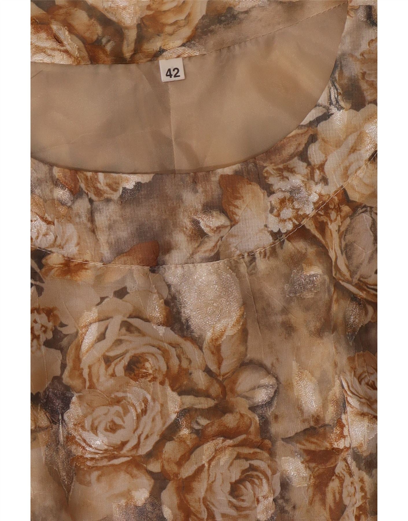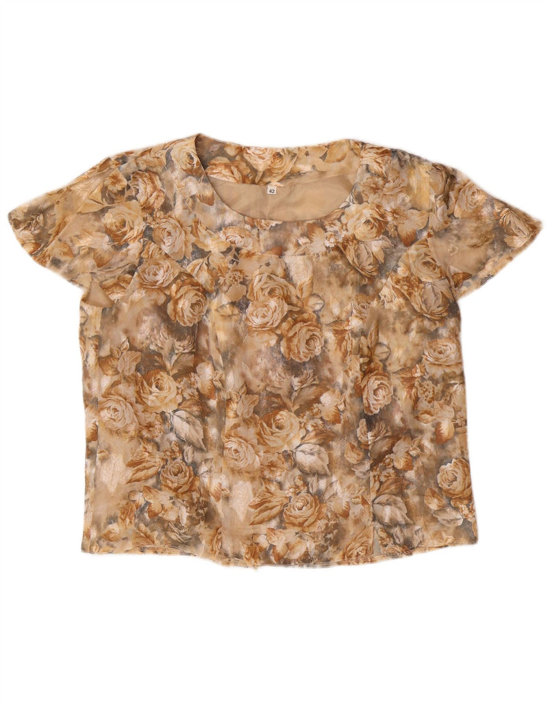 Damska bluzka typu Crop Top IT 42 w stylu vintage, w kolorze średniego beżu, w kwiaty