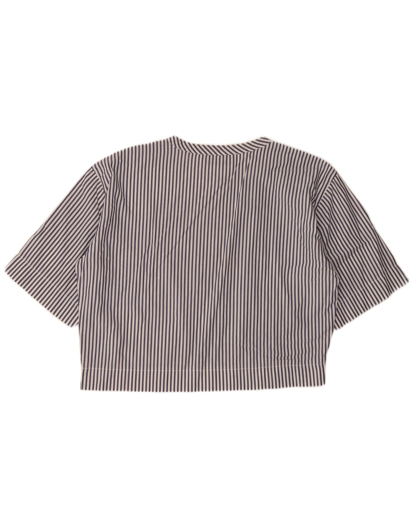 Damska bluzka w stylu vintage, krótka, UK 14, duża, granatowa w prążki