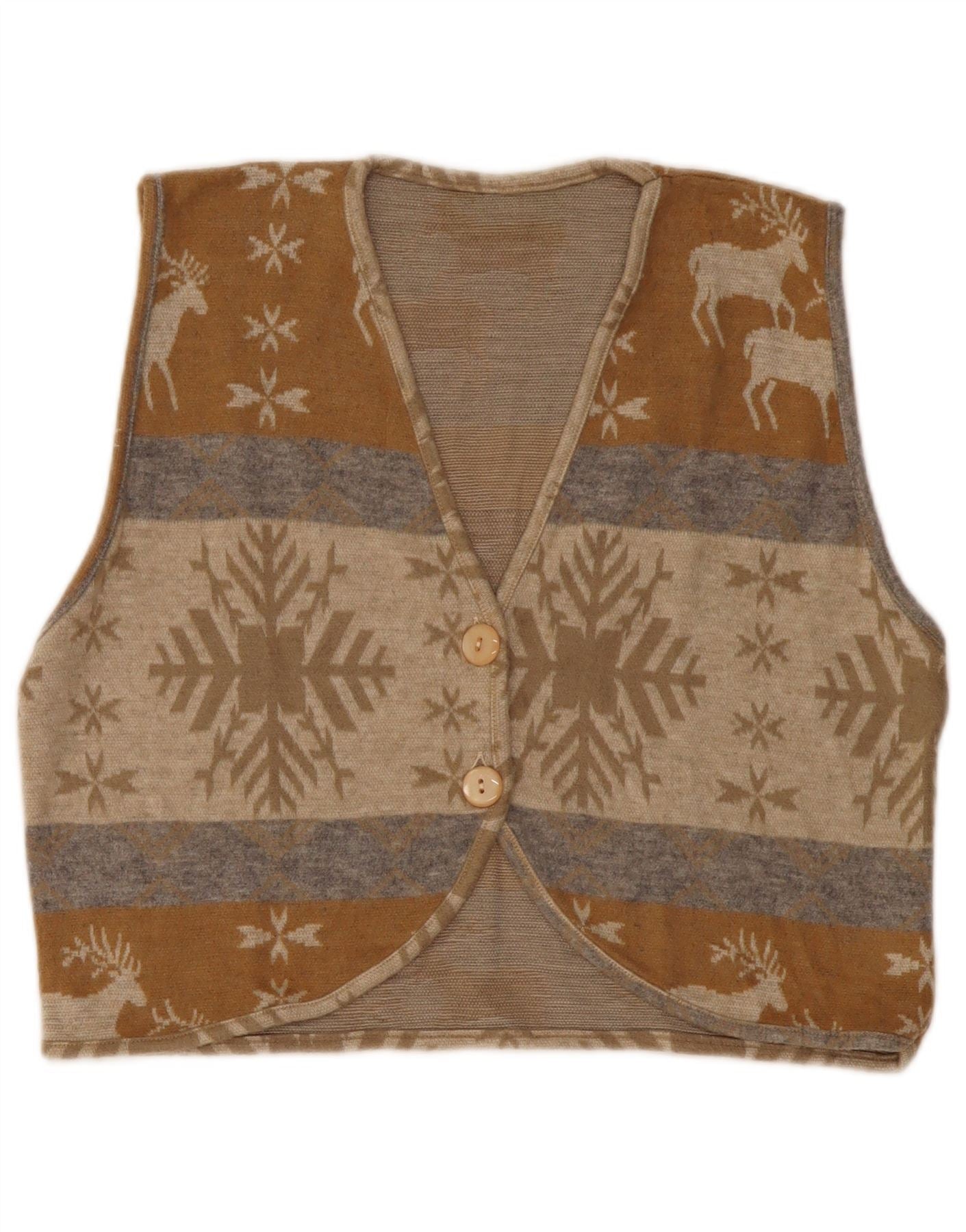 Sweter damski VINTAGE Crop Cardigan UK 14 Medium Beige Fair Isle