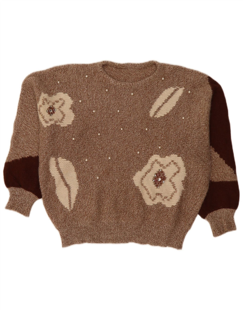 Damski sweter VINTAGE z okrągłym dekoltem UK 14, średni brąz nakrapiany