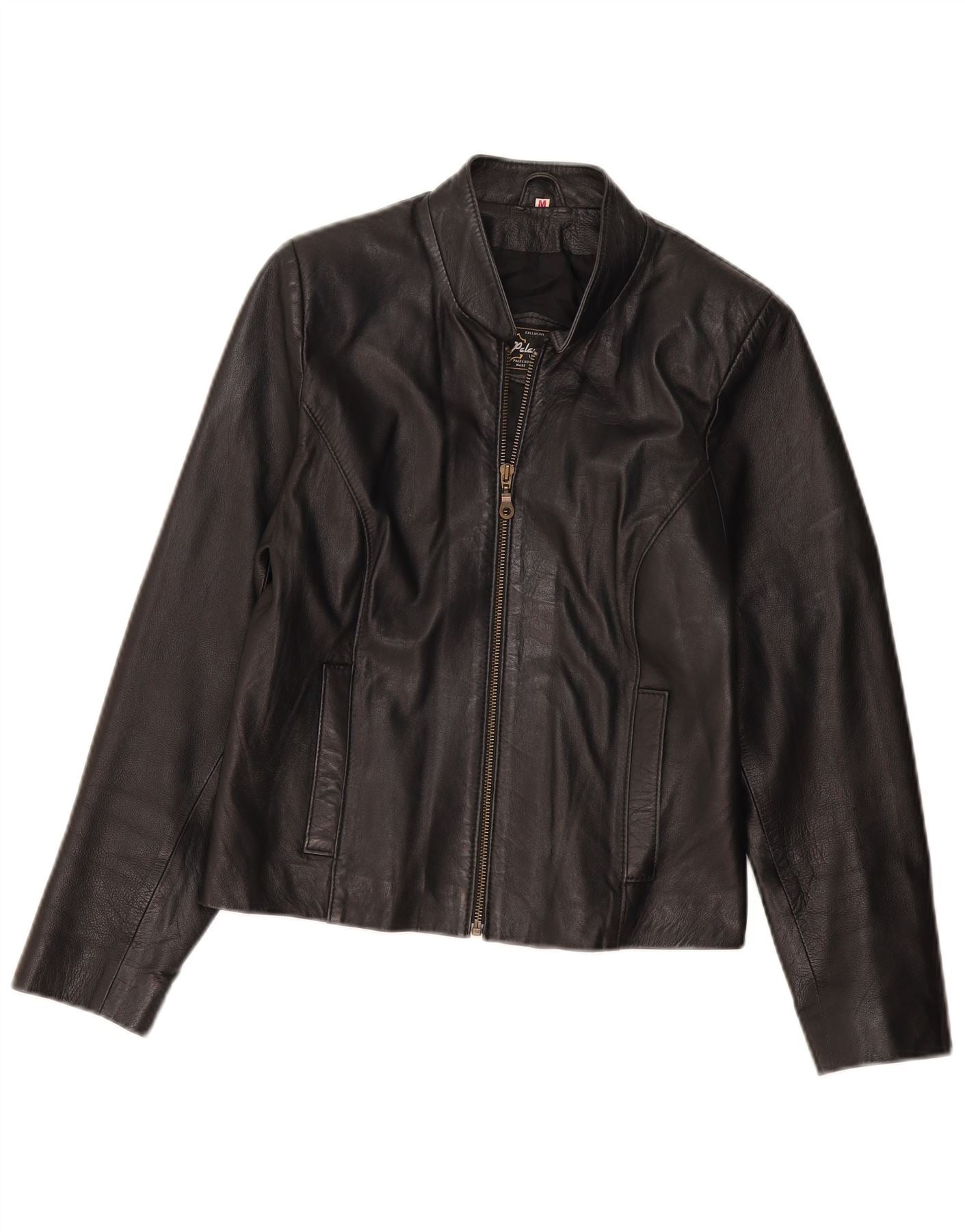 Damska kurtka skórzana typu Crop VINTAGE UK 14, średnia czarna skóra