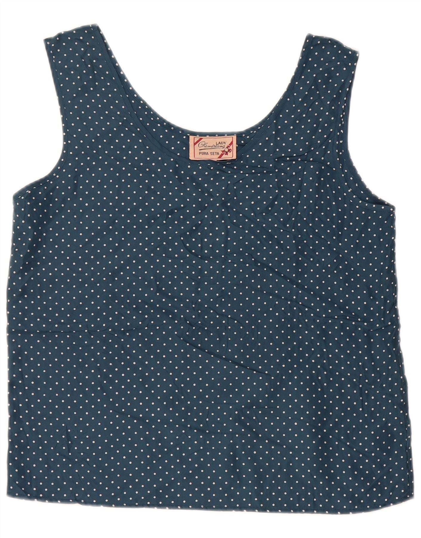 Damska bluzka bez rękawów w stylu vintage, krótka, UK 14, duża, granatowa w cętki