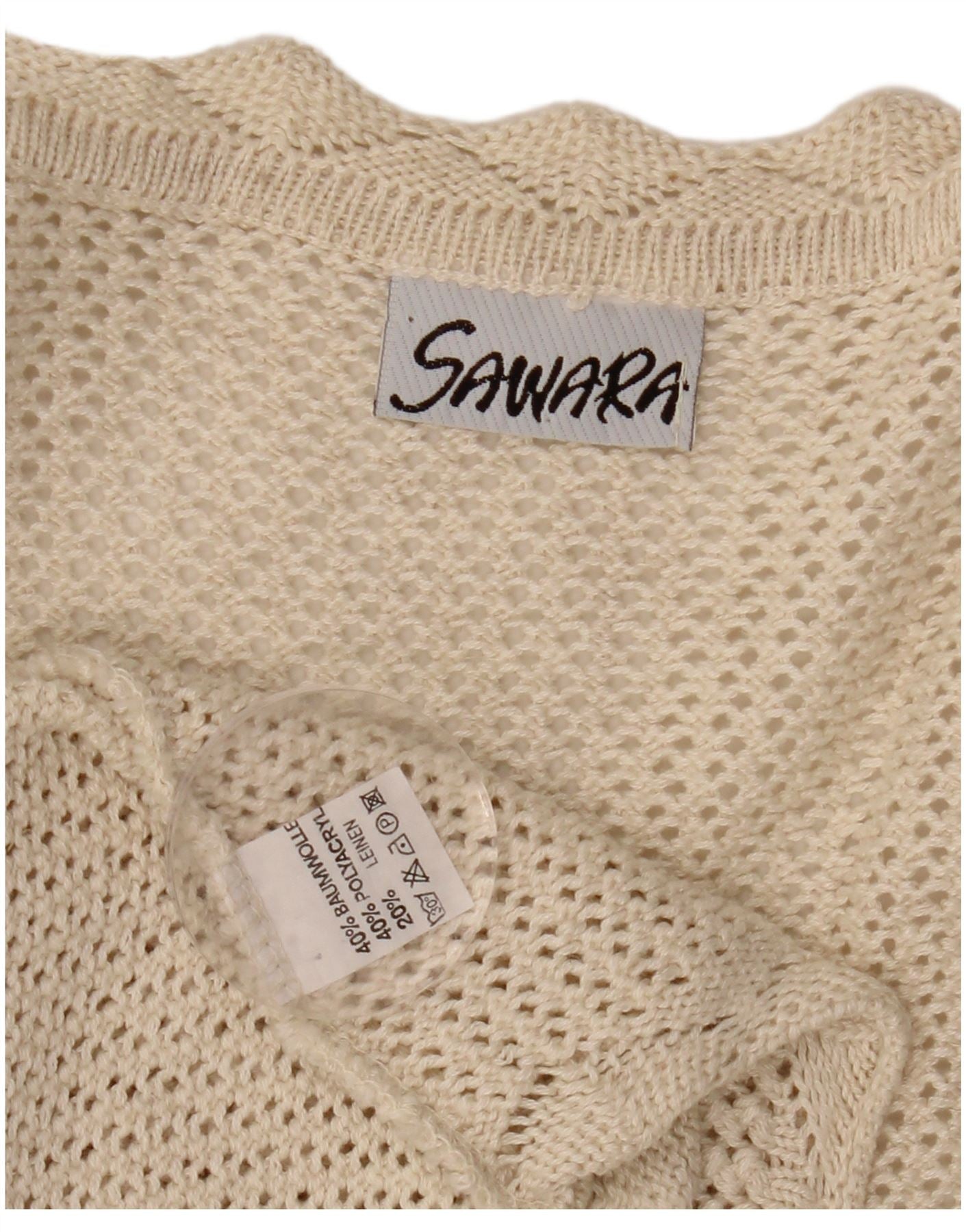 VINTAGE damski sweter bez rękawów, szydełkowany, szydełkowy, UK 14, duży, beżowy