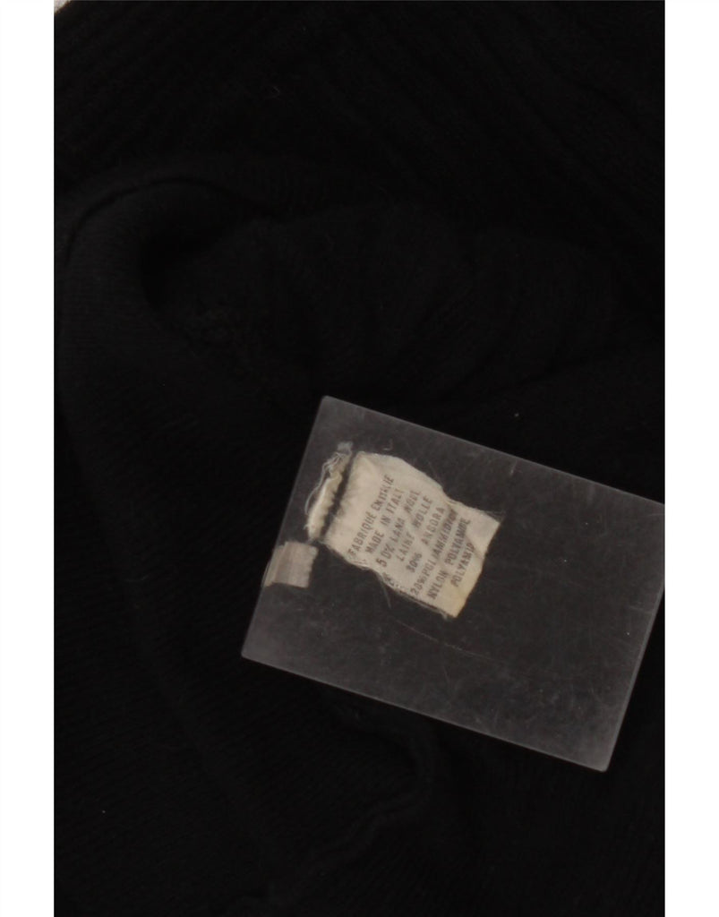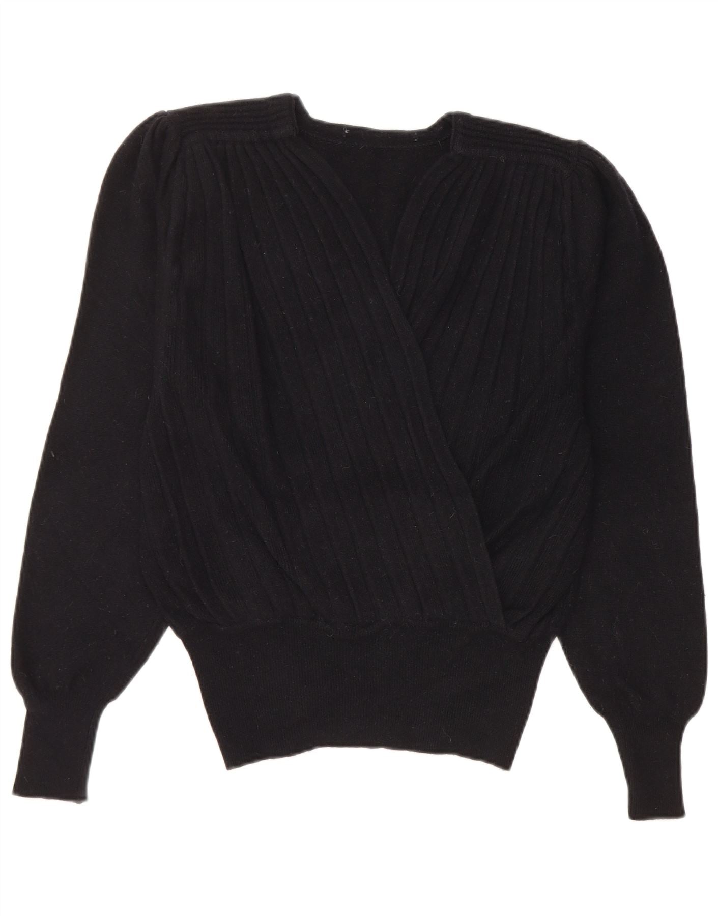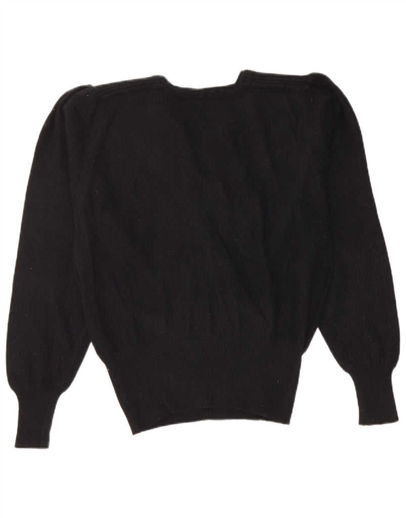VINTAGE Womens Crop V-Neck Jumper Sweater UK 14 Medium Black Wool
