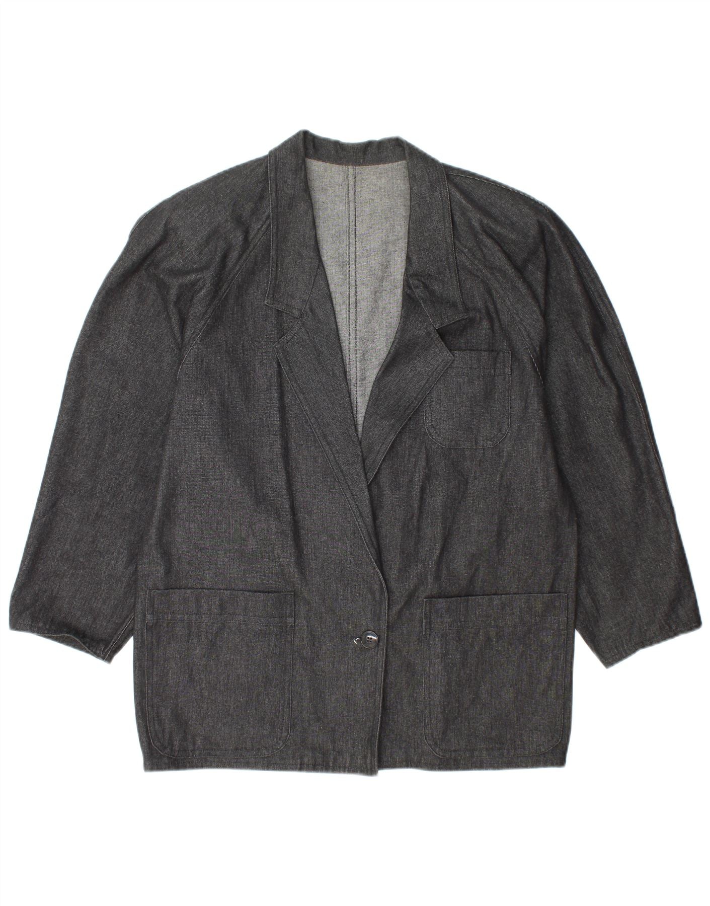 Damska marynarka dżinsowa zapinana na 1 guzik w stylu vintage, duża, szara