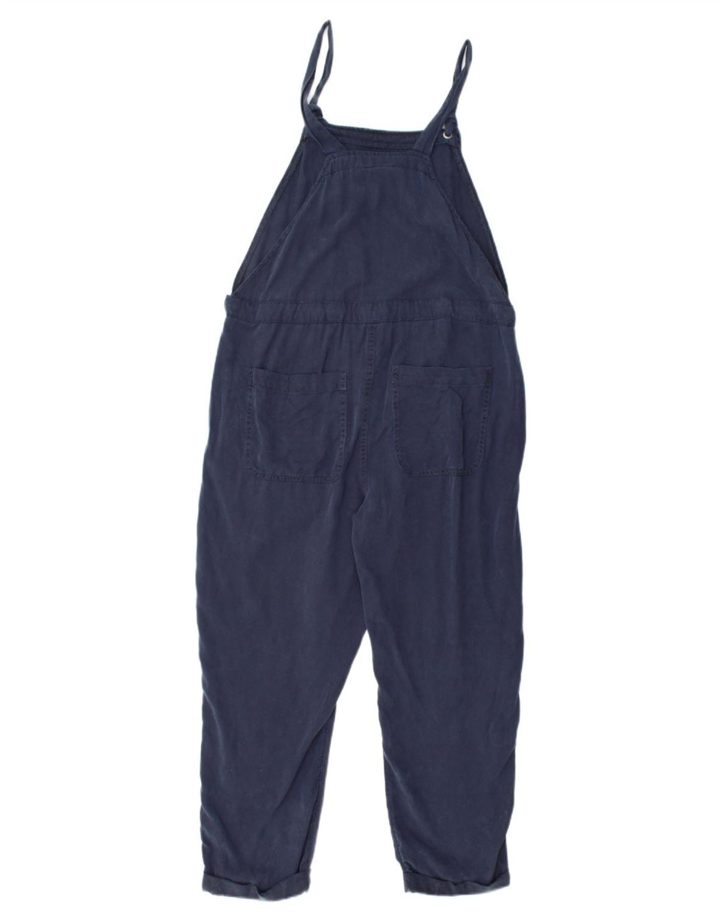 VINTAGE Womens Dungaree Jumpsuit UK 12 Medium Navy Blue Lyocell Classic
