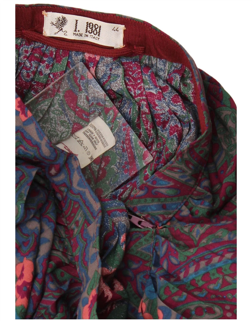 VINTAGE Womens Flared Skirt IT 44 Medium W32 Purple Paisley Viscose