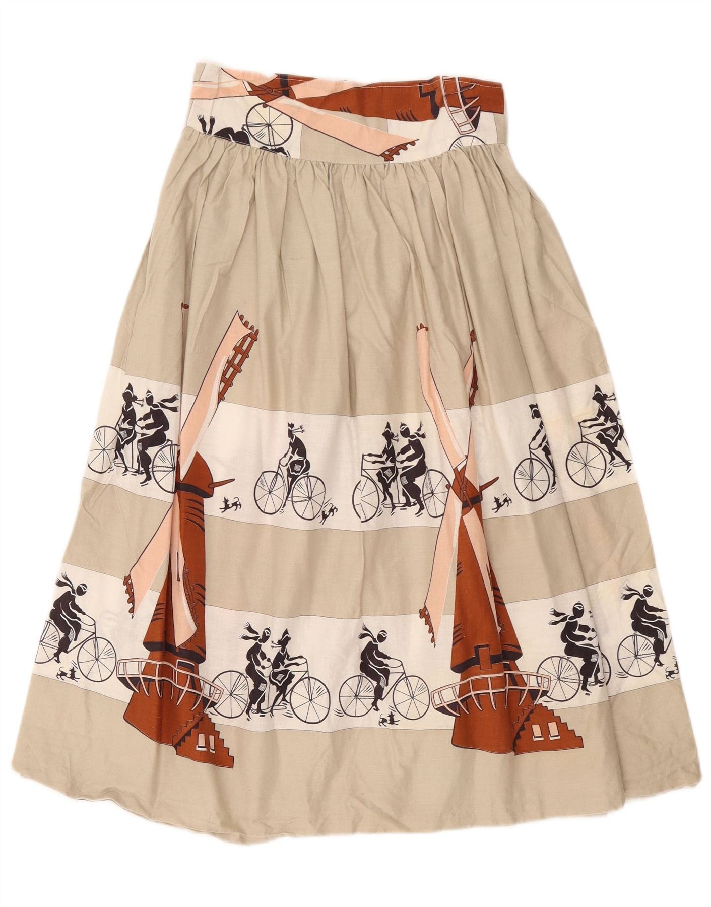 - Opis sztucznej inteligencji: Ta damska spódnica w kształcie litery A w stylu vintage jest wykonana z beżowej tkaniny. Charakteryzuje się zgrabną sylwetką w kształcie litery A i długością midi. Regularny krój zapewnia wygodę noszenia. Dyskretny zamek błyskawiczny zabezpiecza talię. Spódnica ma uroczy nadruk graficzny przedstawiający wiatraki i ludzi jeżdżących na rowerach, co dodaje jej ilustracyjnego stylu retro. Ten unikalny wzór tworzy zainteresowanie wizualne i charakterystyczny wygląd.