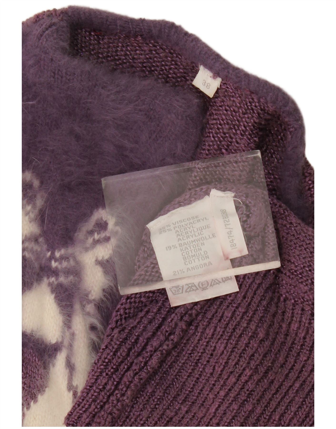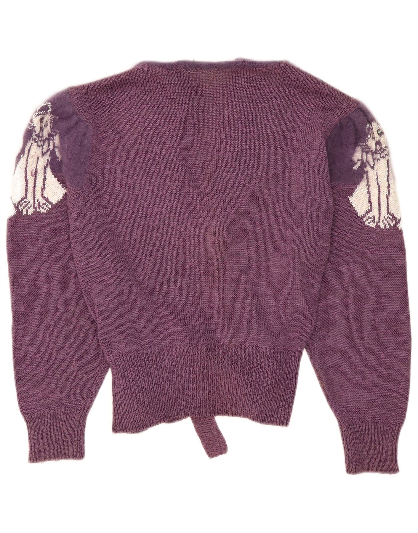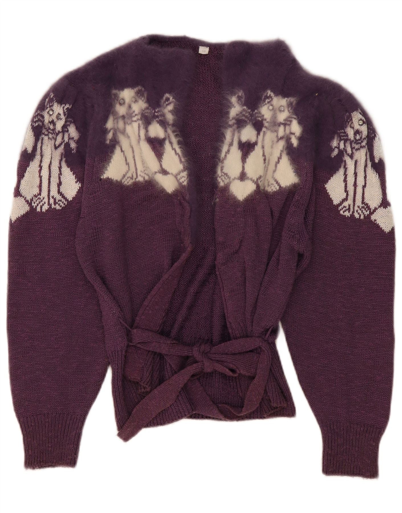 VINTAGE Womens Graphic Cardigan Sweater EU 38 Medium Purple Animal Print