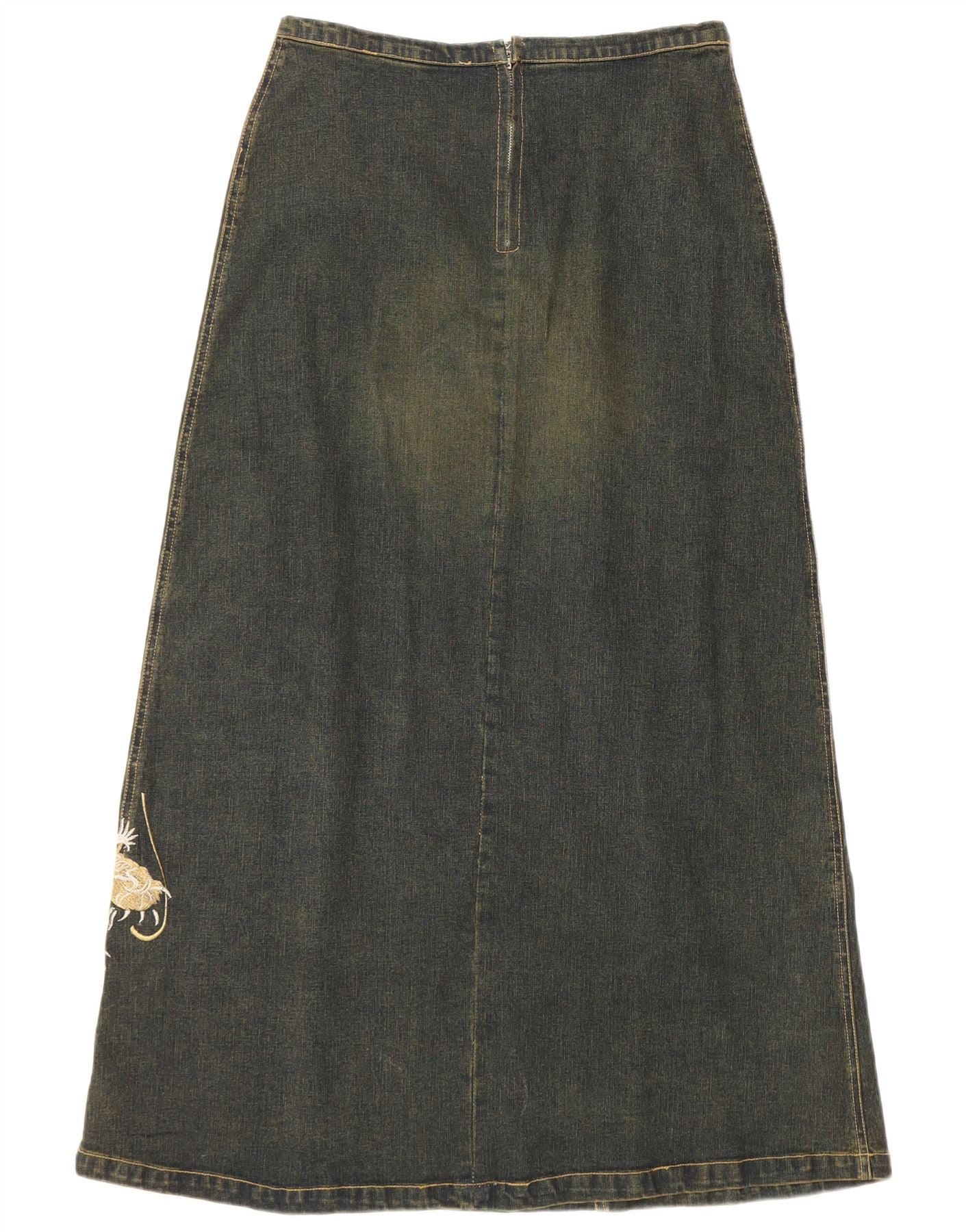Damska spódnica jeansowa VINTAGE Graphic UK 12 Medium W30 Niebieska bawełna