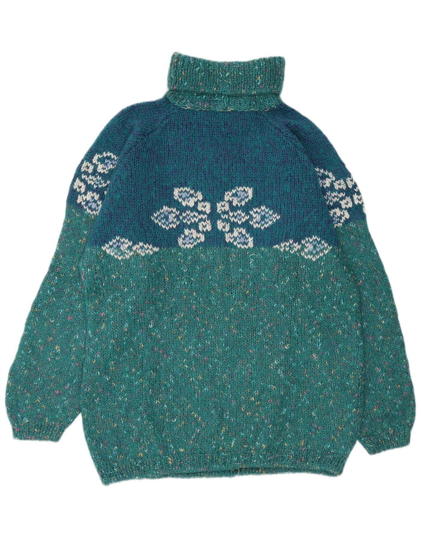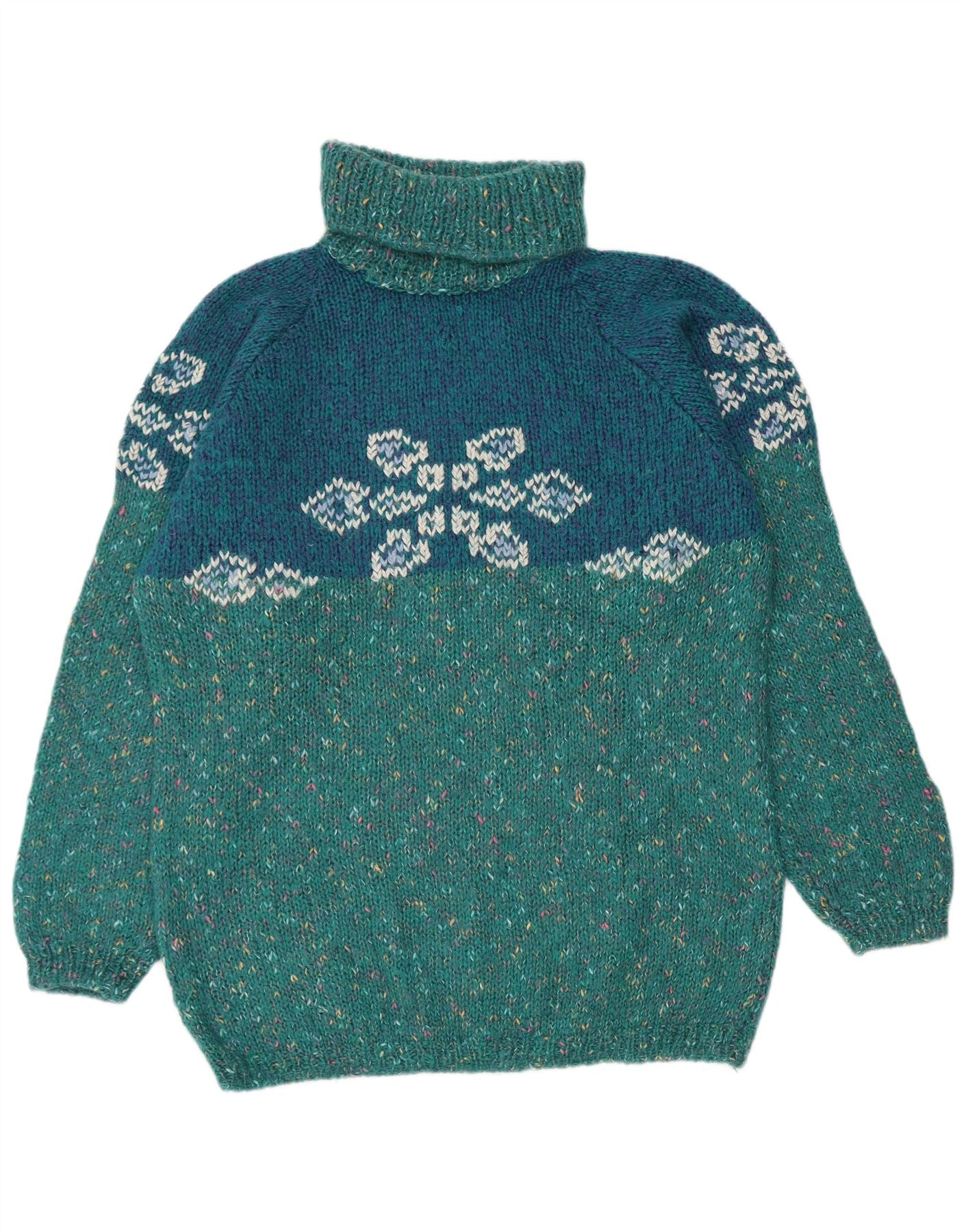 Damski sweter VINTAGE z grafiką i okrągłym dekoltem UK 18 XL Turkusowy nakrapiany