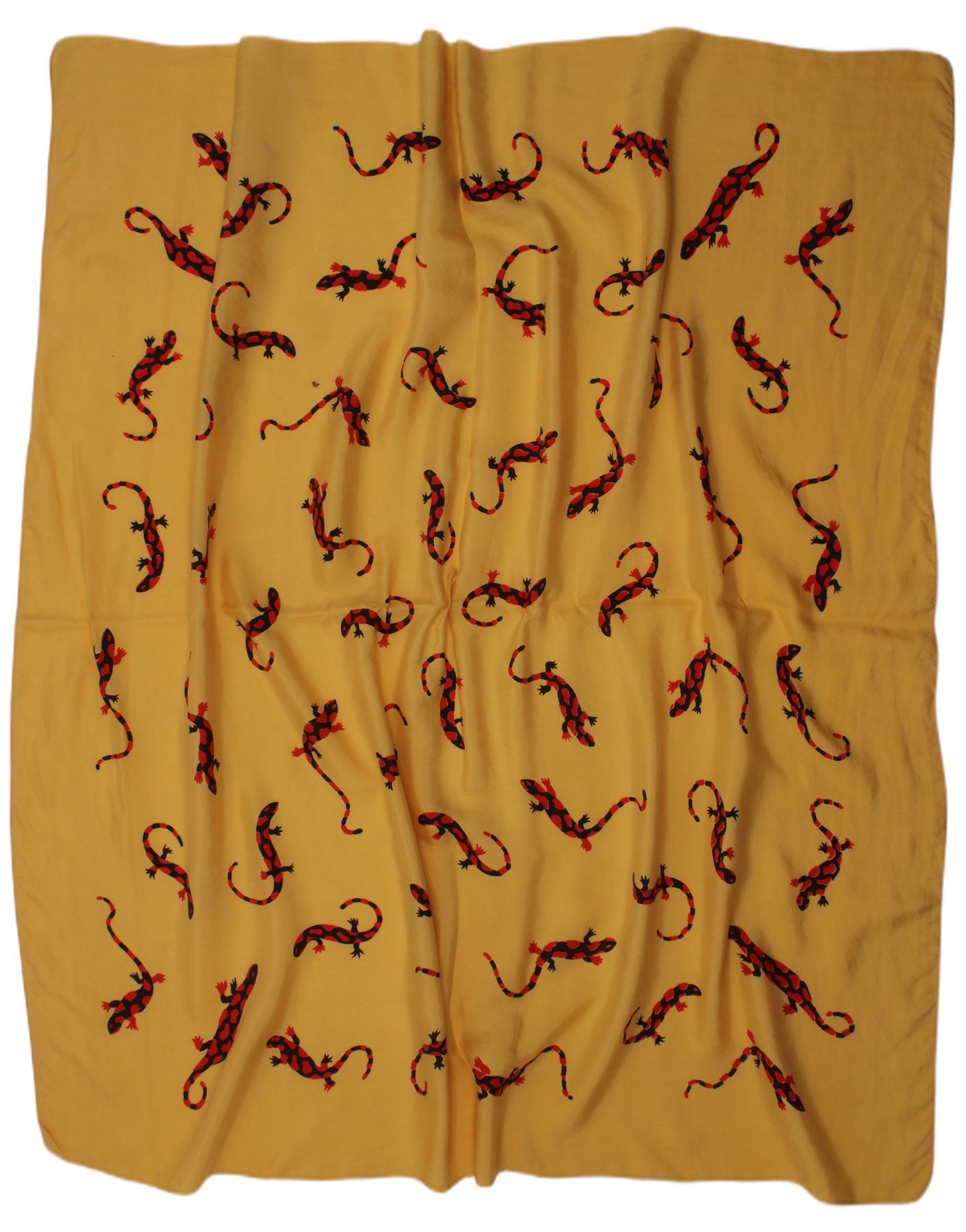 VINTAGE Womens Graphic Square Scarf One Size Yellow Animal Print Animals