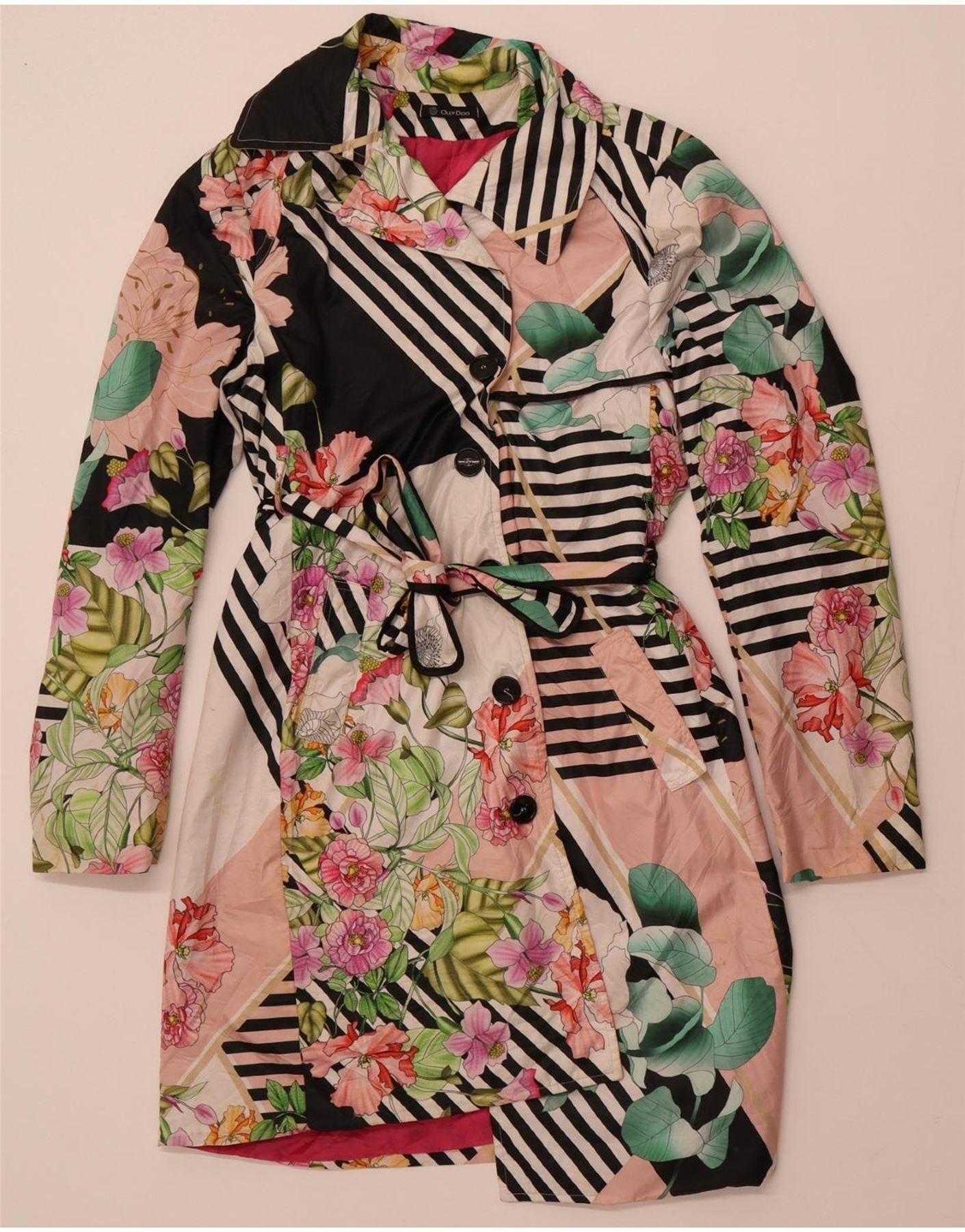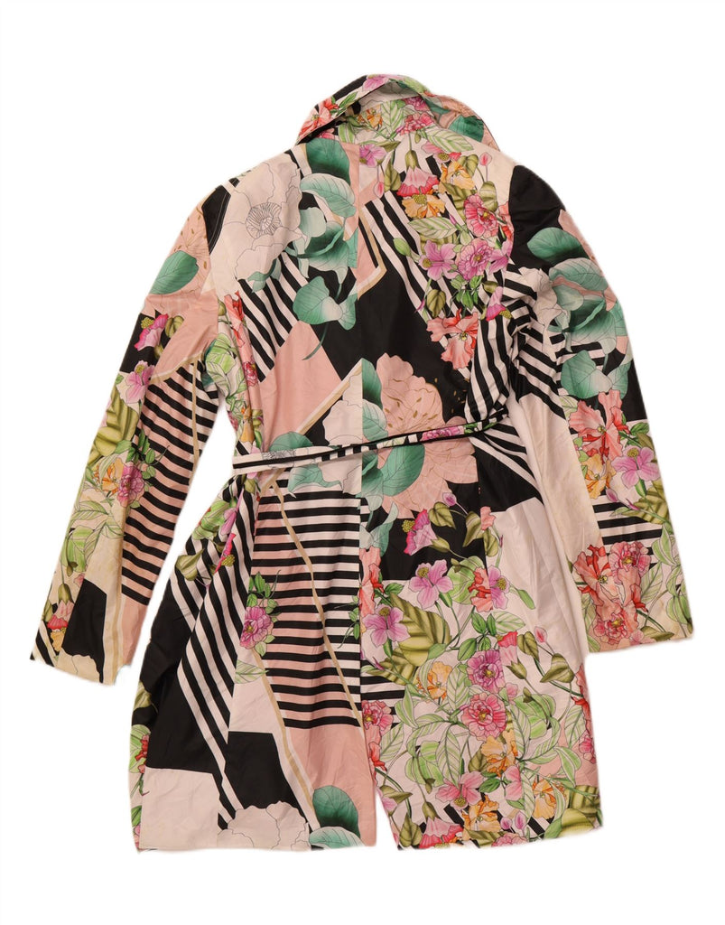 VINTAGE Womens Graphic Trench Coat IT 50 XL Multicoloured Floral Polyester