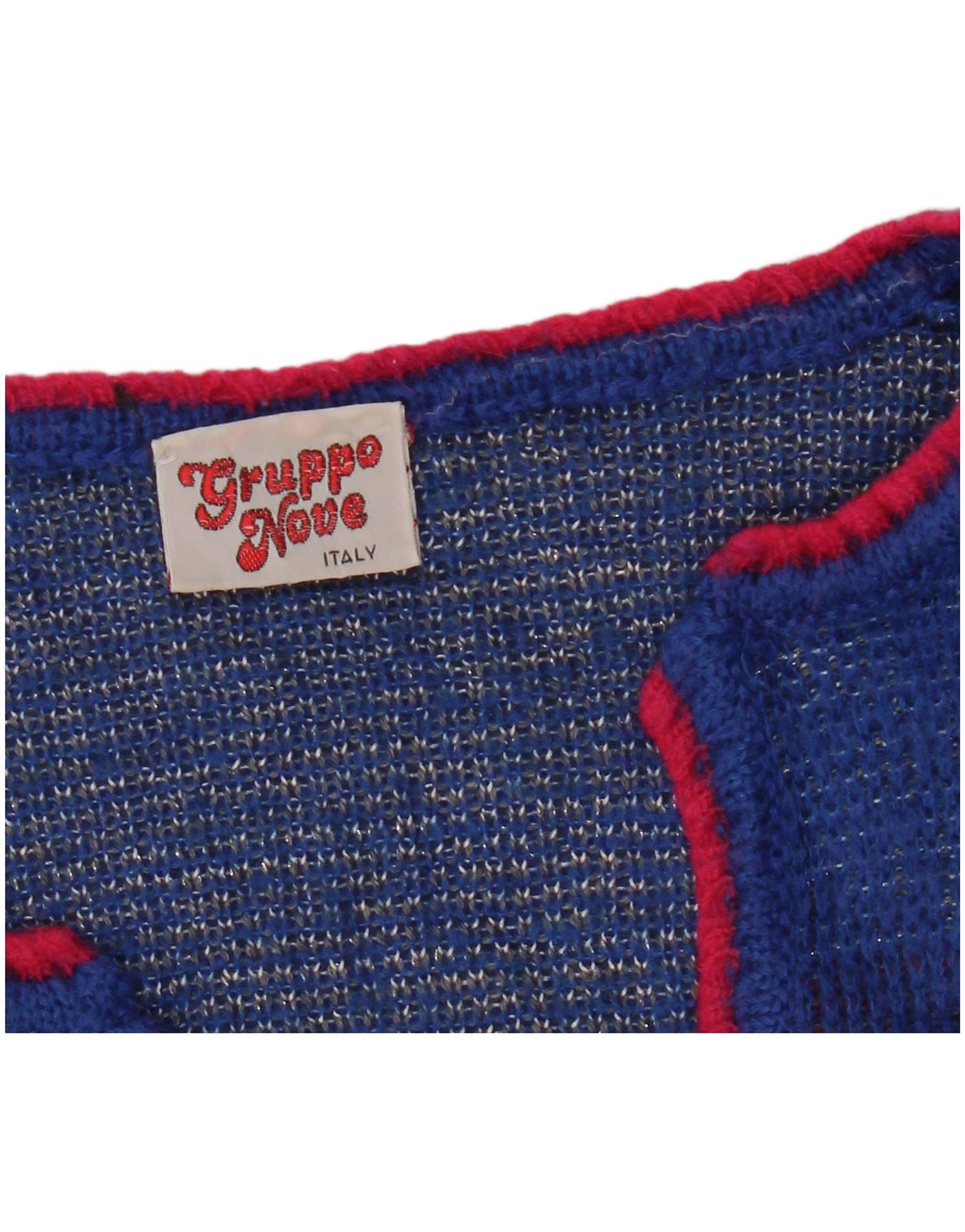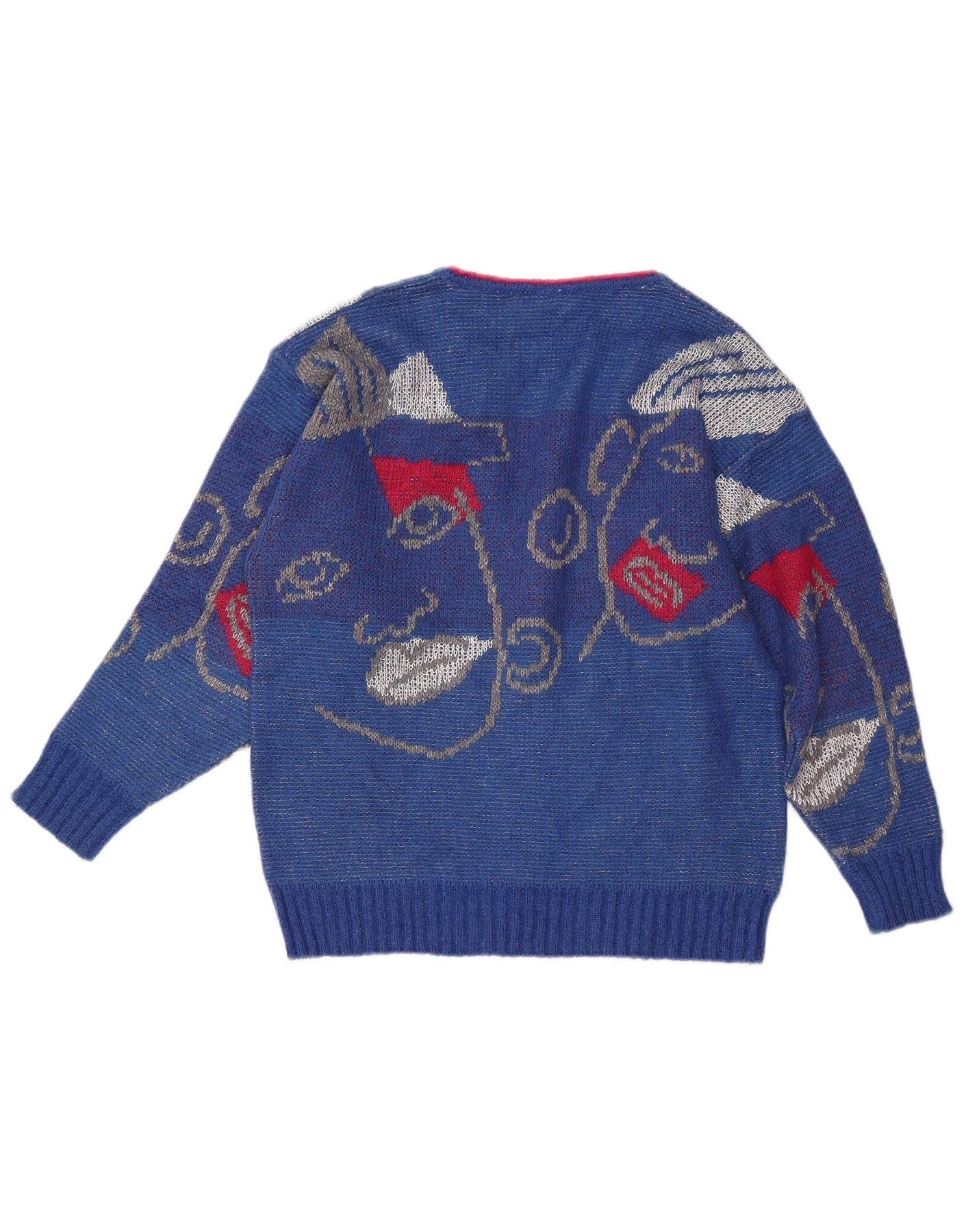Damski sweter VINTAGE z graficznym dekoltem w kształcie litery V, UK 16, duży niebieski