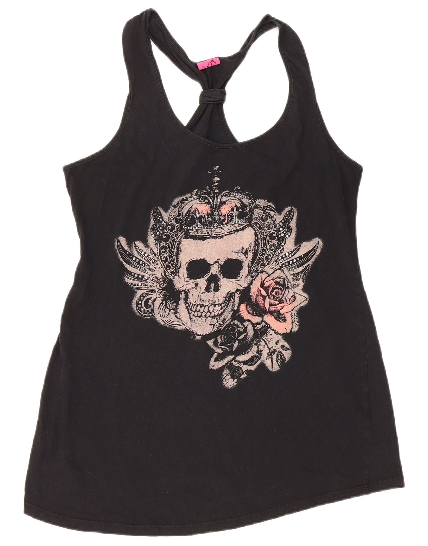 Damska kamizelka z grafiką VINTAGE UK 12, średnia czarna bawełna