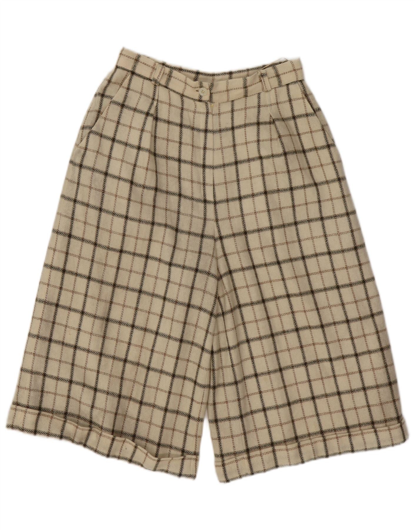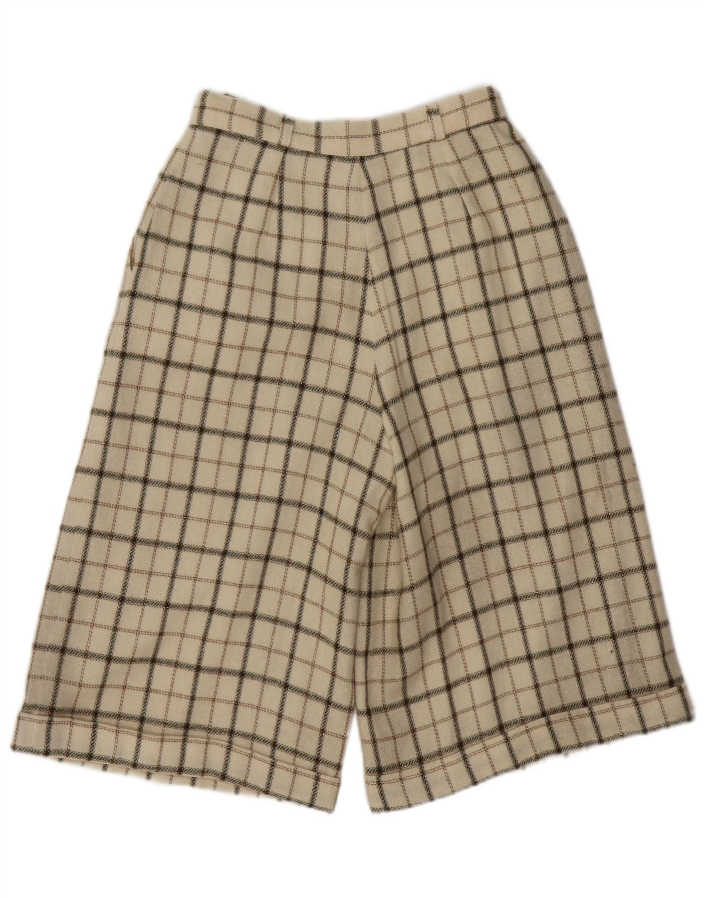 Krótkie spodenki damskie VINTAGE z wysokim stanem, średnie W26, wełniane w beżową kratkę