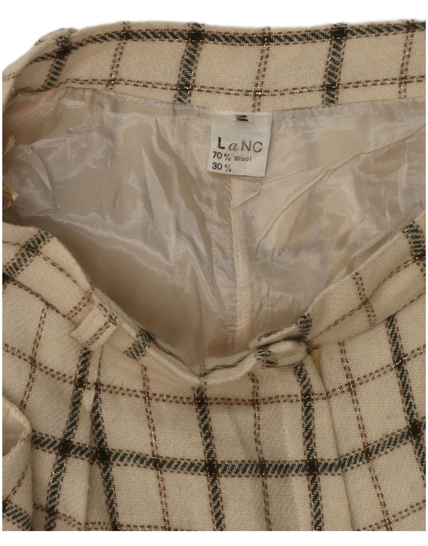 Home > Damskie > Odzież Depopa > Krótkie spodenki damskie VINTAGE z wysokim stanem, średnie W26, wełniane w beżową kratkę