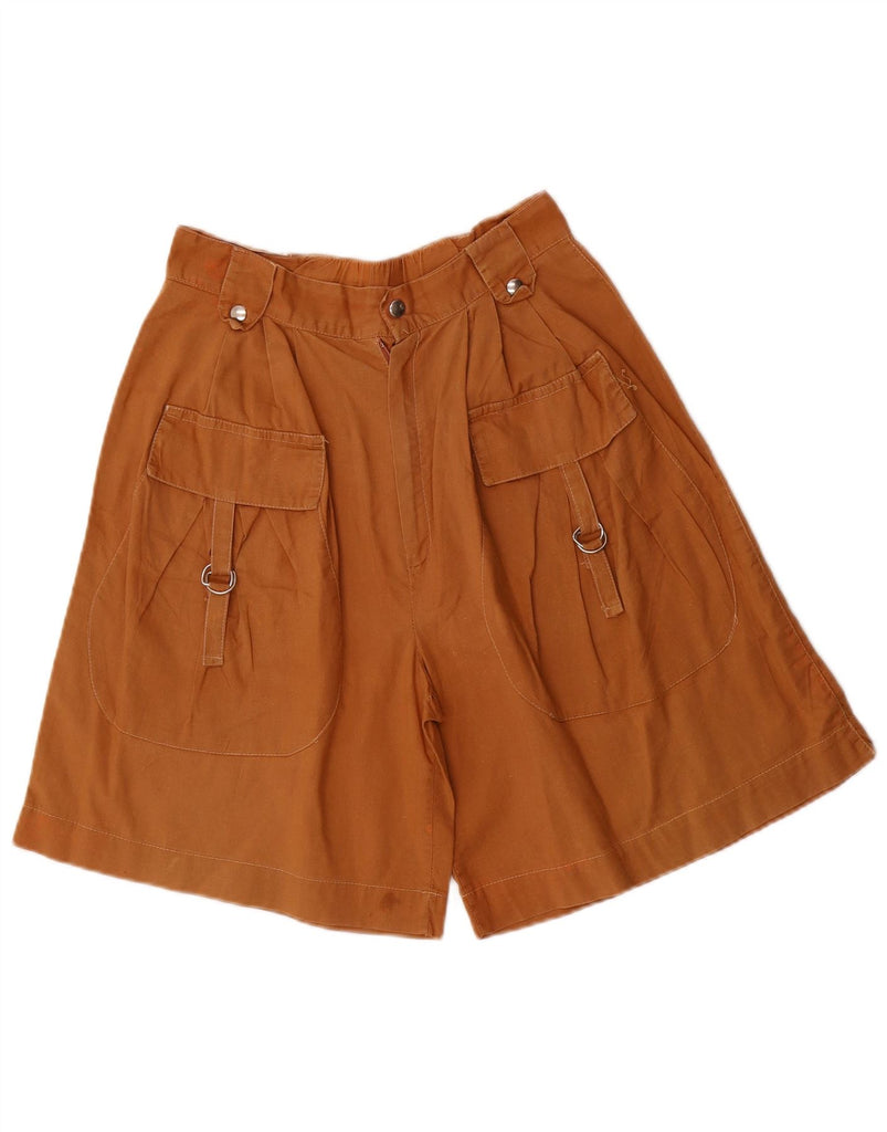 VINTAGE Womens High Waist Pegged Casual Shorts W26 Small Brown Cotton