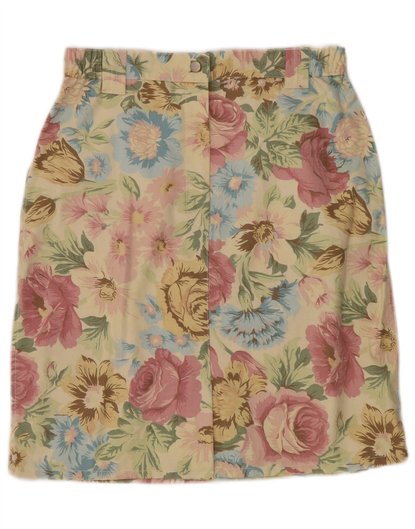 VINTAGE Damska prosta spódnica z wysokim stanem W30 Średni żółty w kwiaty