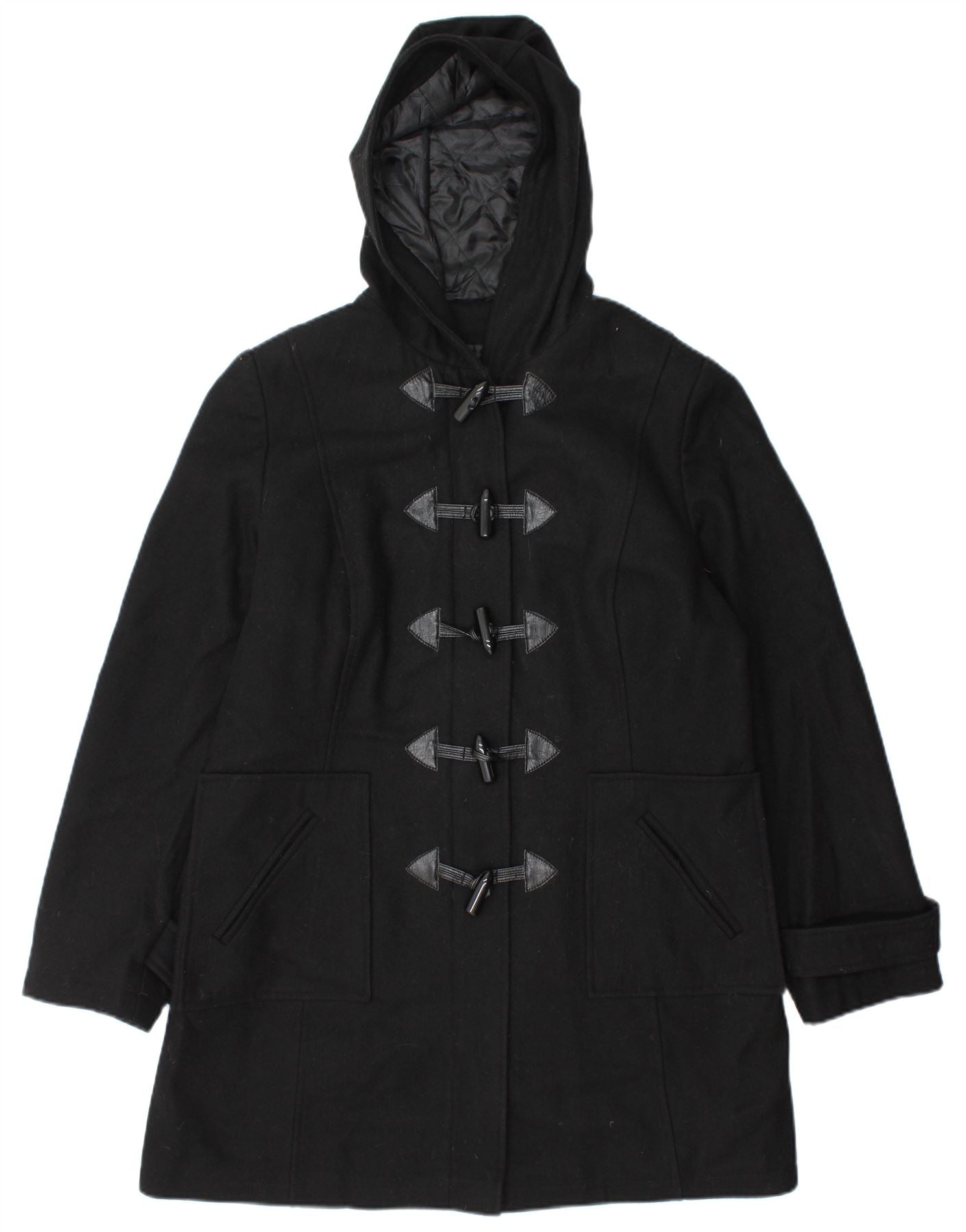 Vintage damski płaszcz z kapturem i kapturem UK 14, duża czarna wełna