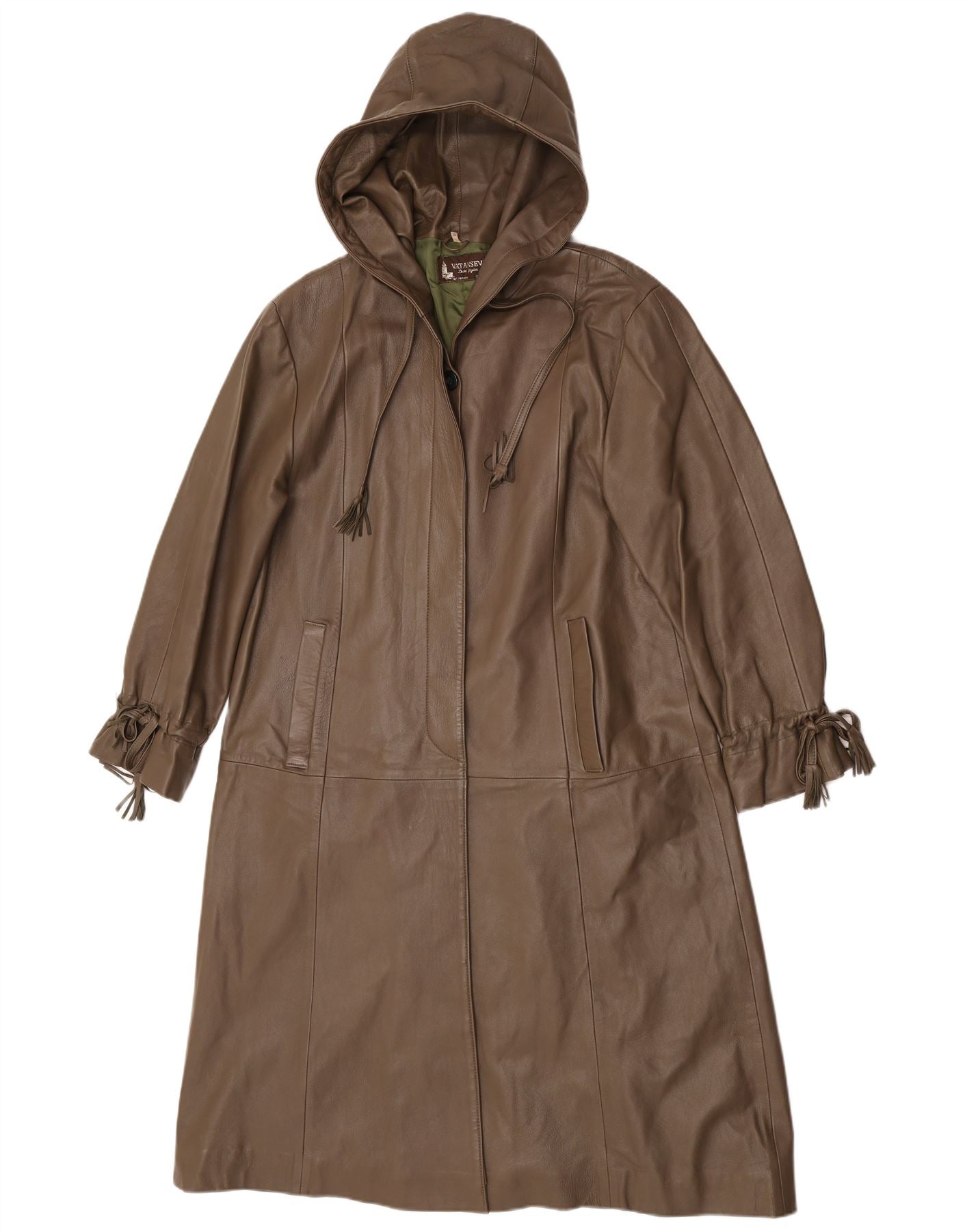 Vintage damski płaszcz skórzany z kapturem EU 38, średnio brązowa skóra