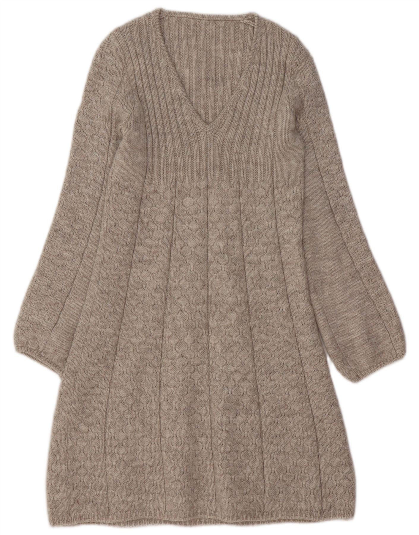 VINTAGE Damska Sukienka Sweterowa UK 10 Mały Beżowy Akryl