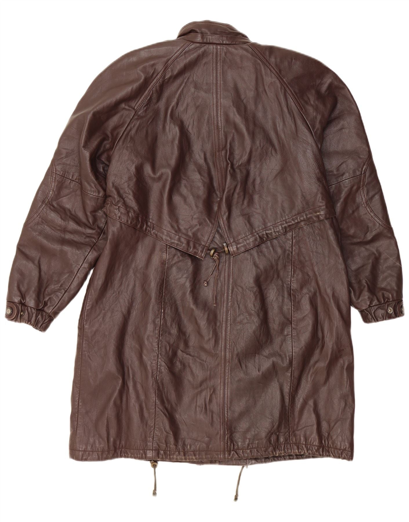 Płaszcz damski VINTAGE UK 14, duży, brązowy, skórzany