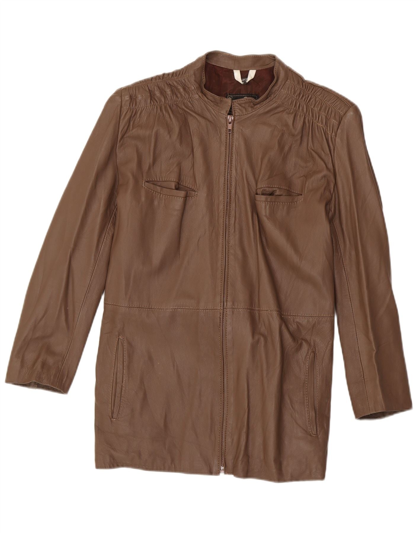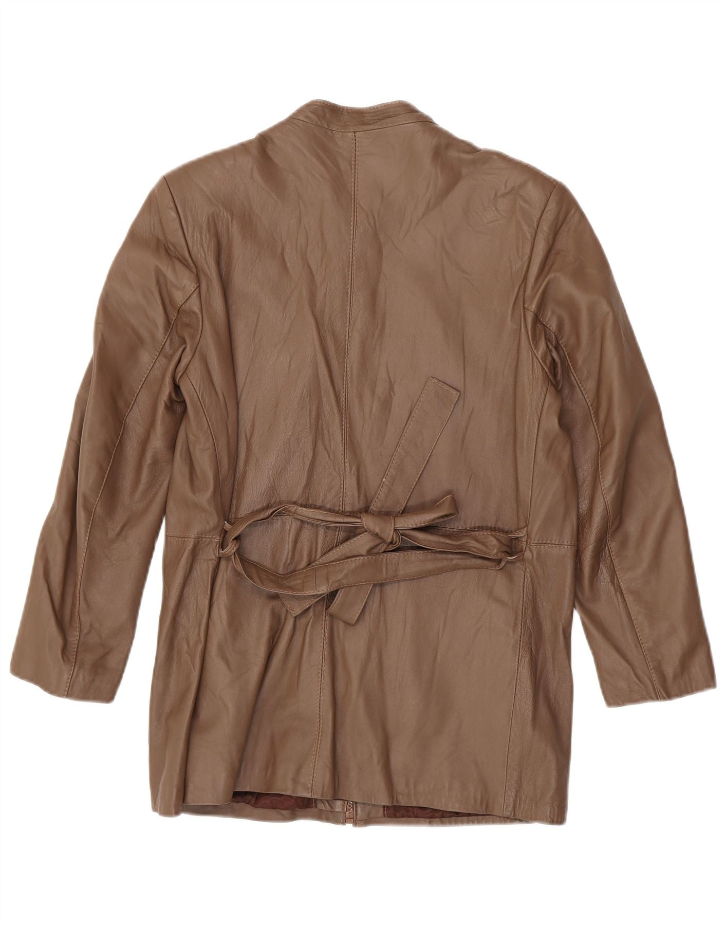 Vintage damski płaszcz skórzany UK 14 ze średniej brązowej skóry