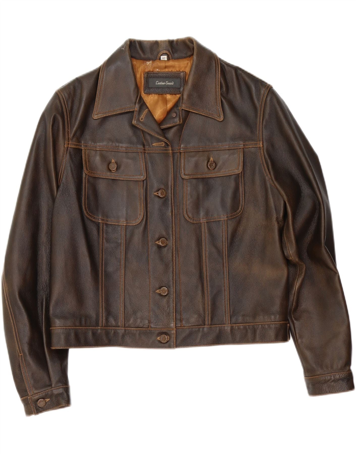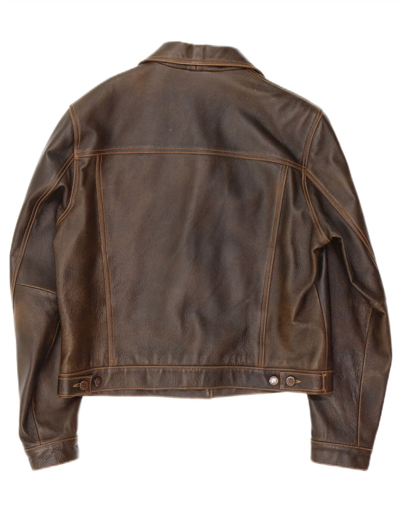 VINTAGE Womens Leather Jacket IT 42 Medium Brown Leather