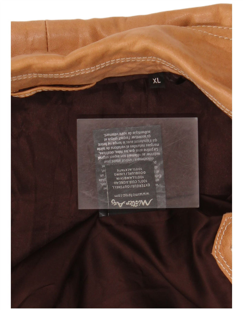 VINTAGE Womens Leather Jacket UK 18 XL Brown Colourblock Lambskin