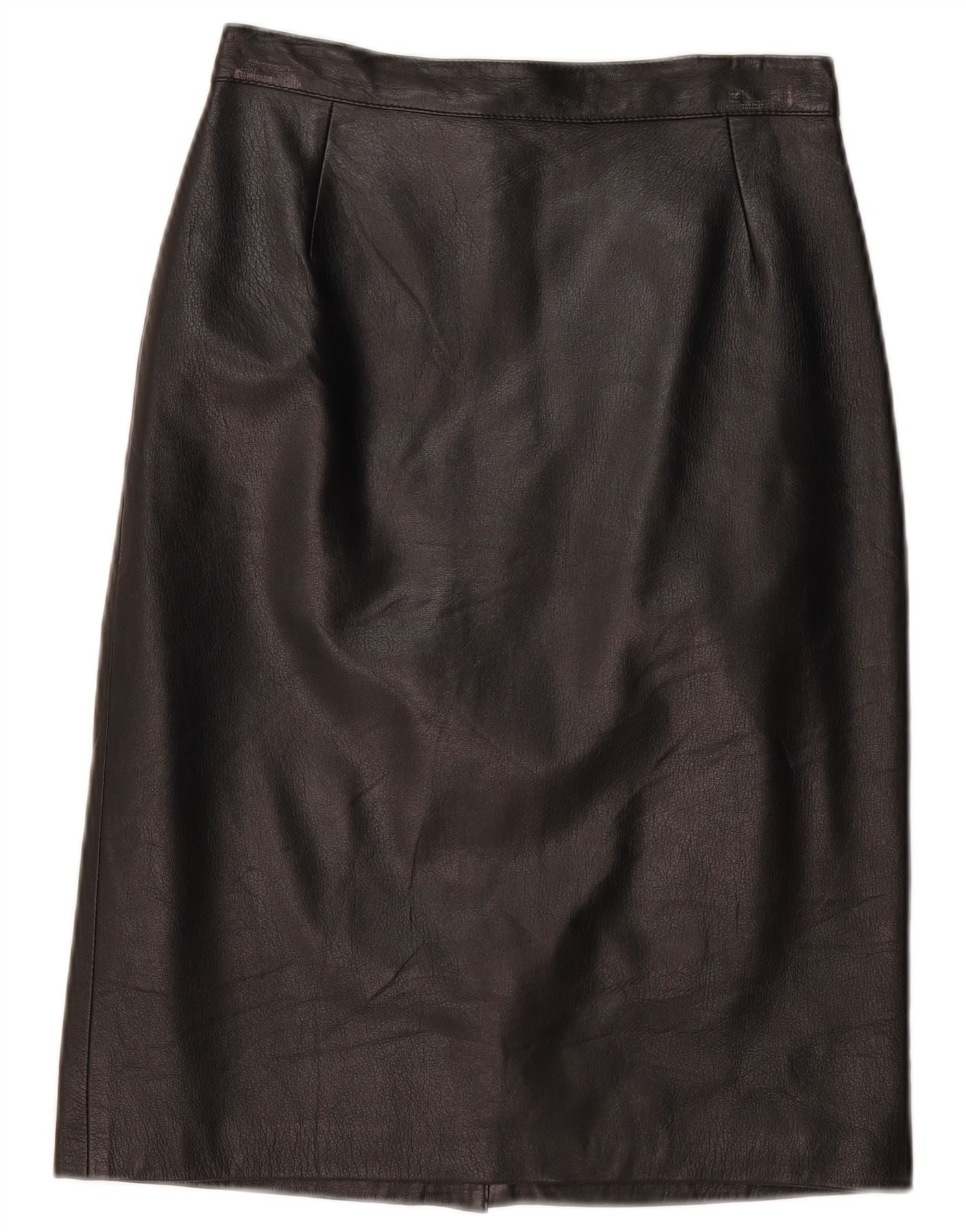 VINTAGE Womens Leather Skirt IT 44 Medium W28 Black Leather
