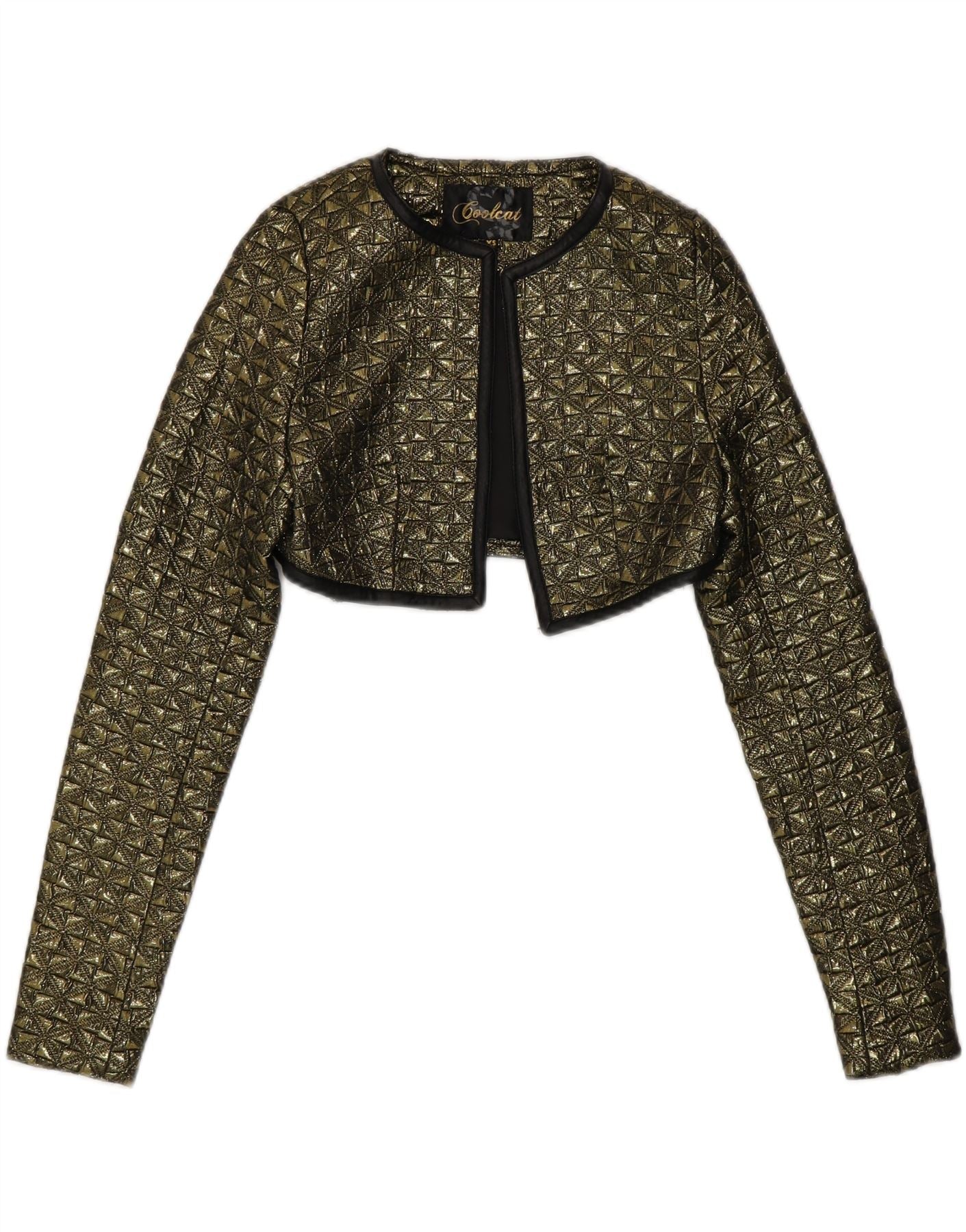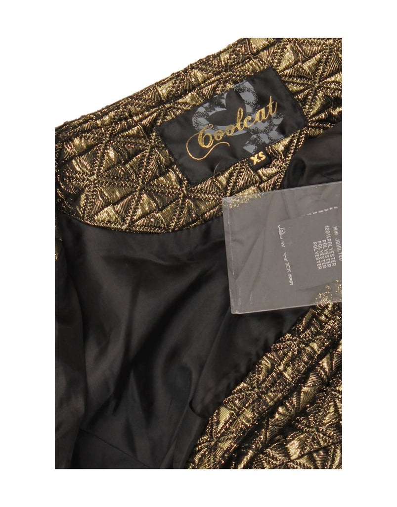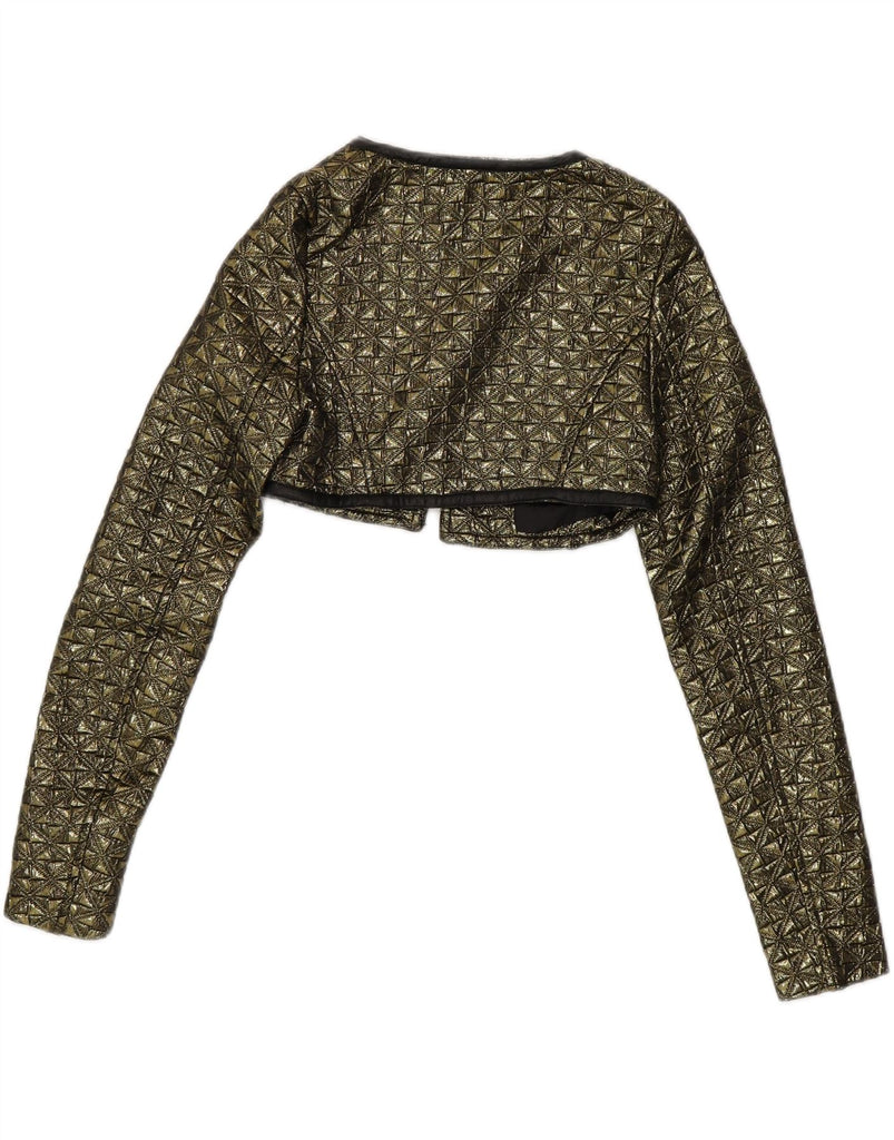 VINTAGE Womens Long Sleeve Bolero Jacket UK 6 XS Gold Geometric Polyester