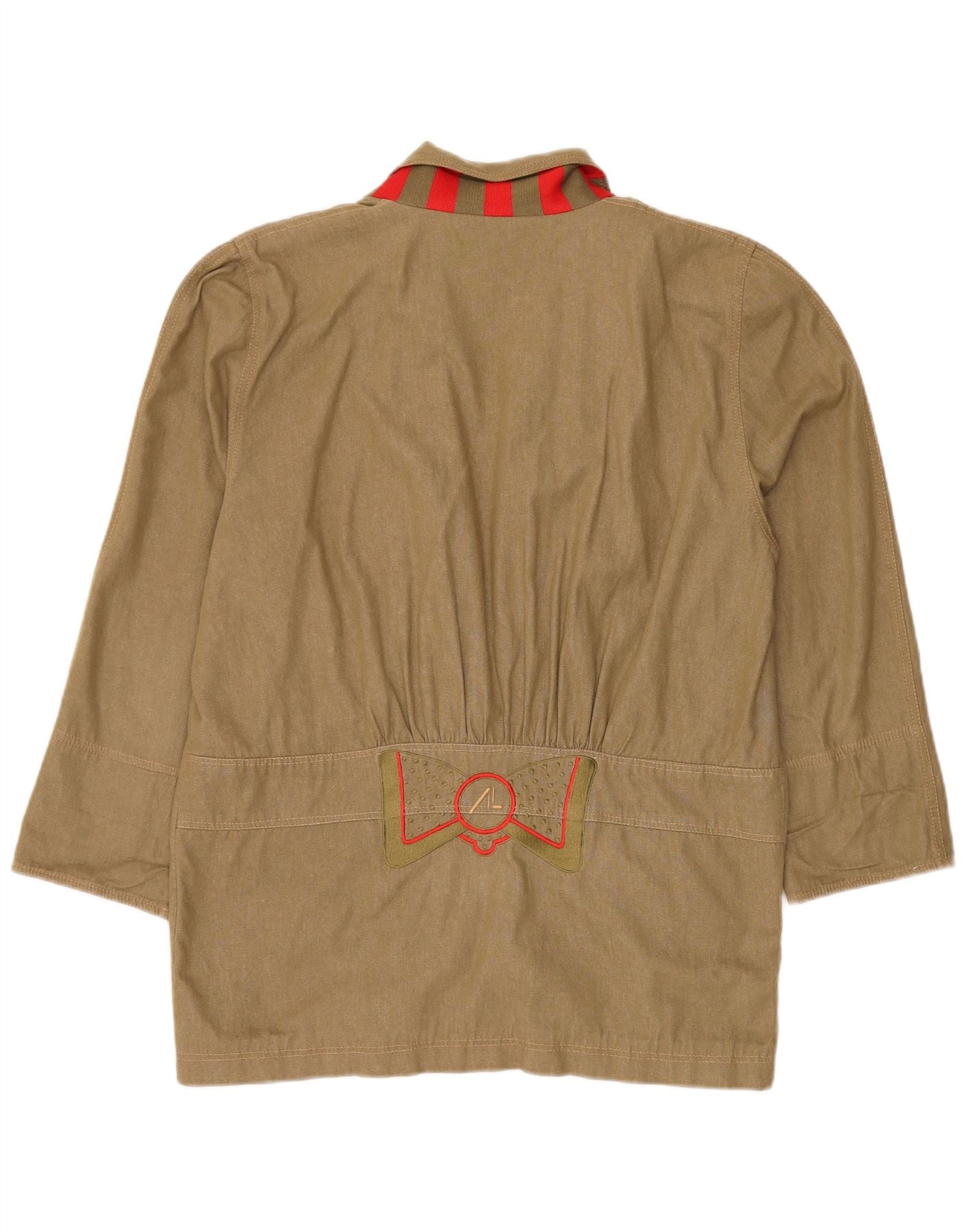 Vintage damska marynarka o przedłużonym fasonie, zapinana na 3 guziki IT 42, średnia zielona bawełna