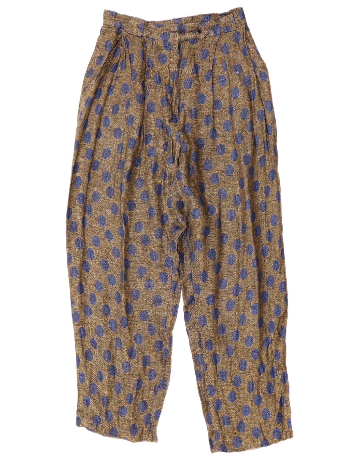Damskie spodnie typu casual o luźnym kroju VINTAGE W26 L29 Beżowe lniane kropki