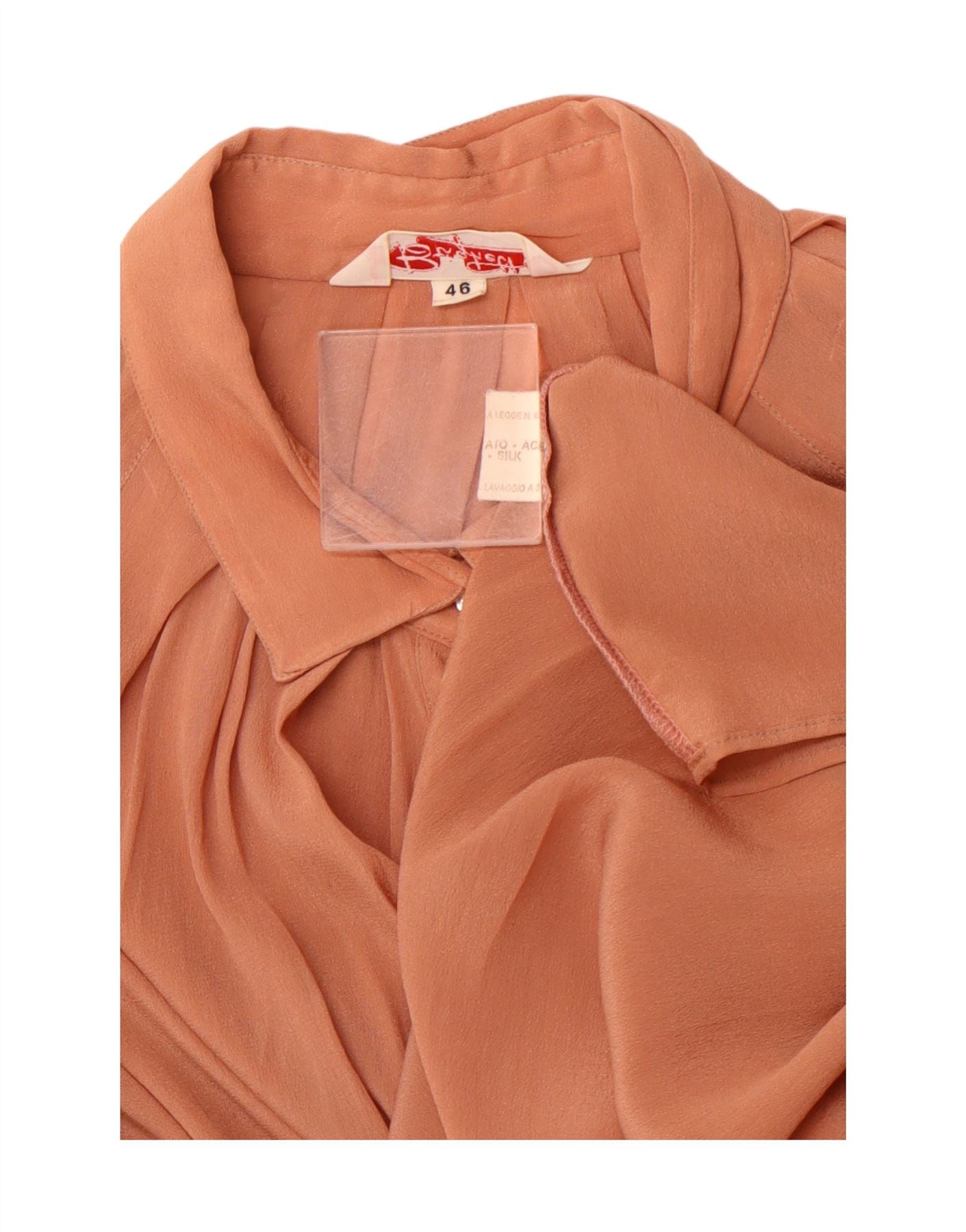 Damska bluzka koszulowa o luźnym kroju VINTAGE z długim rękawem IT 46, duża brązowa