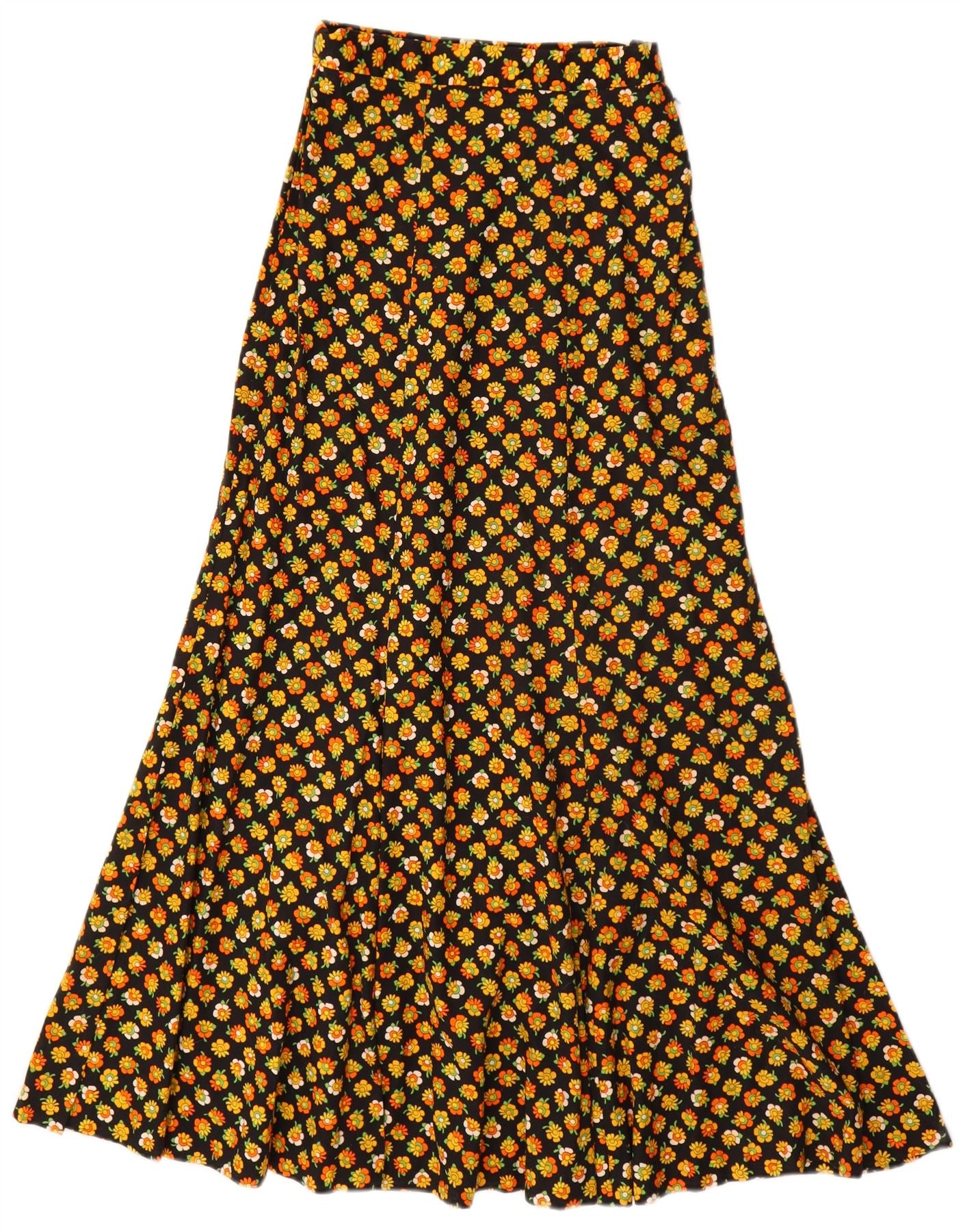 VINTAGE Damska spódnica maxi w kształcie litery A EU 34 2XS W24 Czarna bawełniana w kwiaty